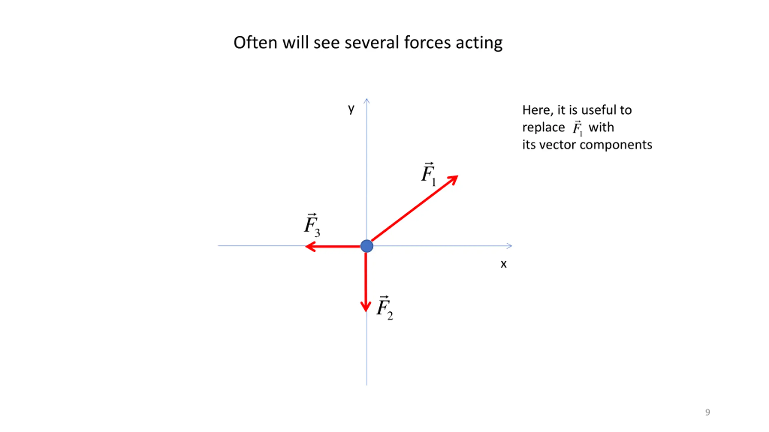 Often will see several forces acting y Here, it is useful to replace with its vector components 1F 1F 3 F x 2 F 9
