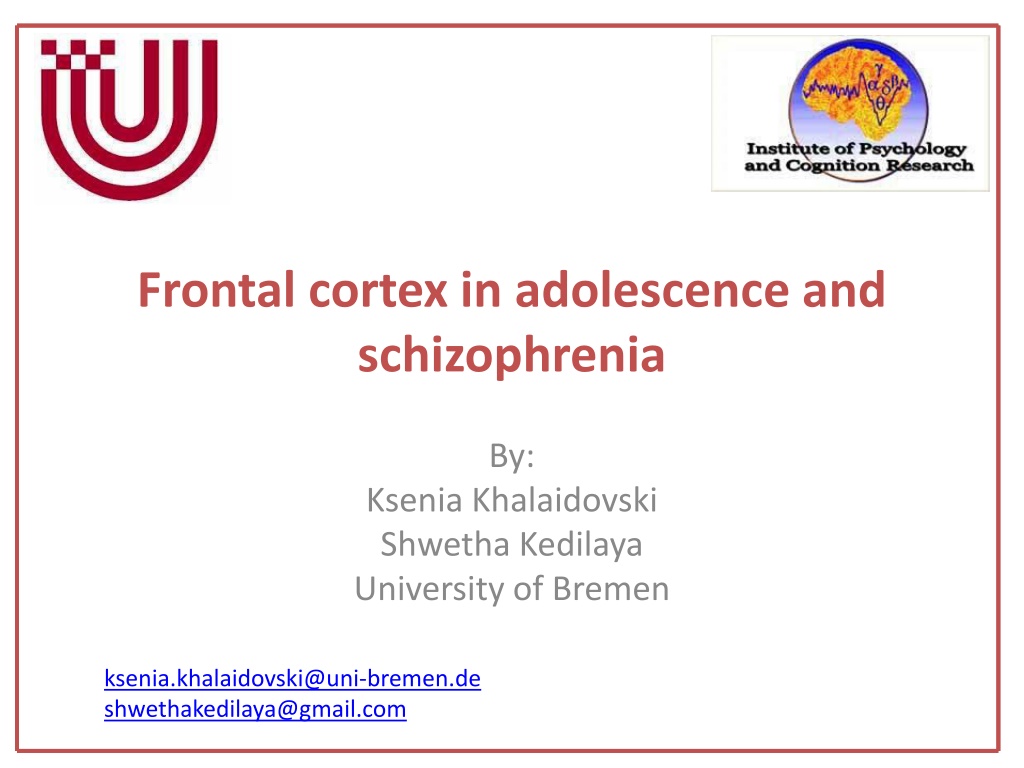 Frontal cortex in adolescence and schizophrenia By: Ksenia Khalaidovski Shwetha Kedilaya University of Bremen ksenia.khalaidovski@uni-bremen.de shwethakedilaya@gmail.com