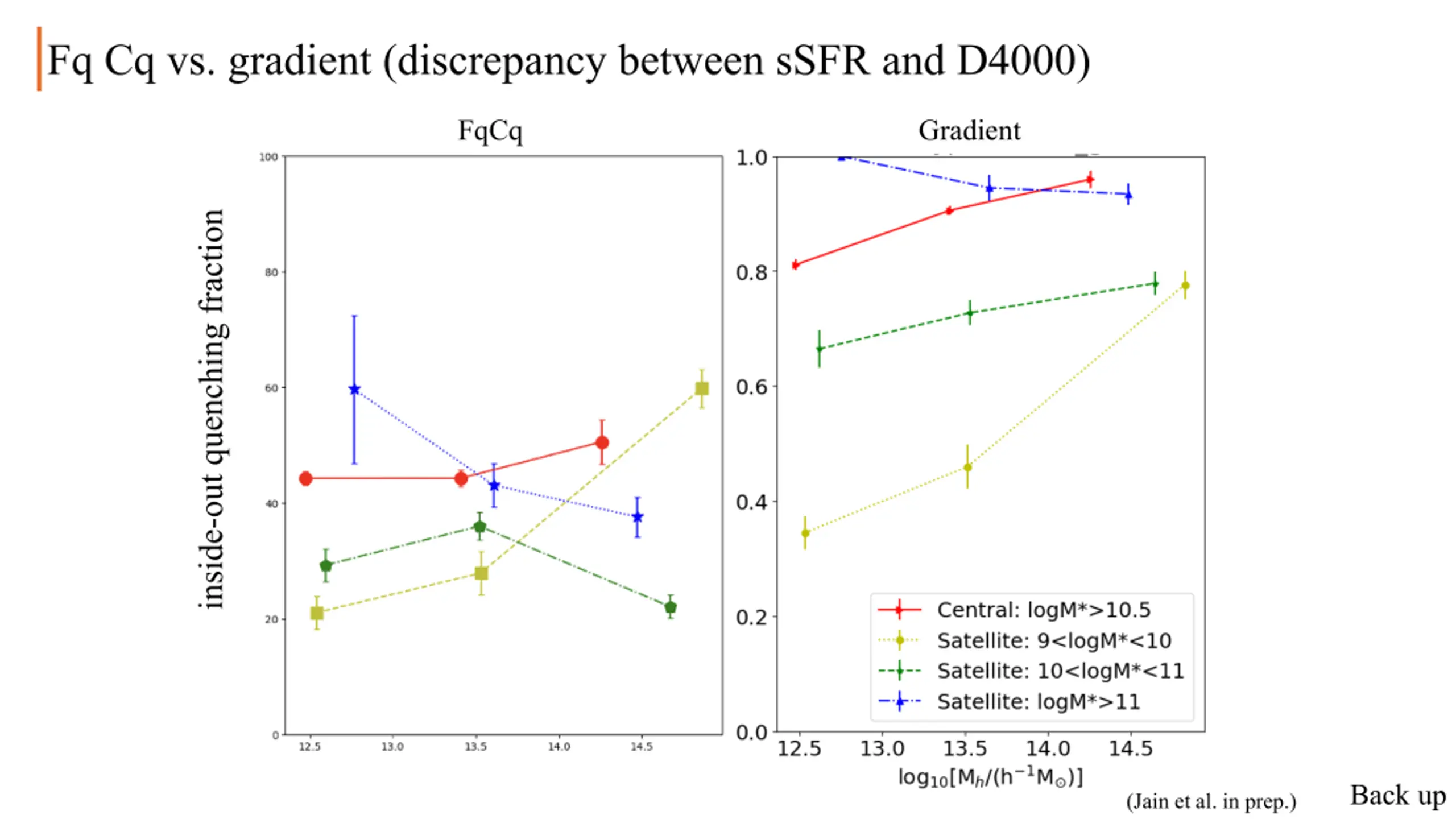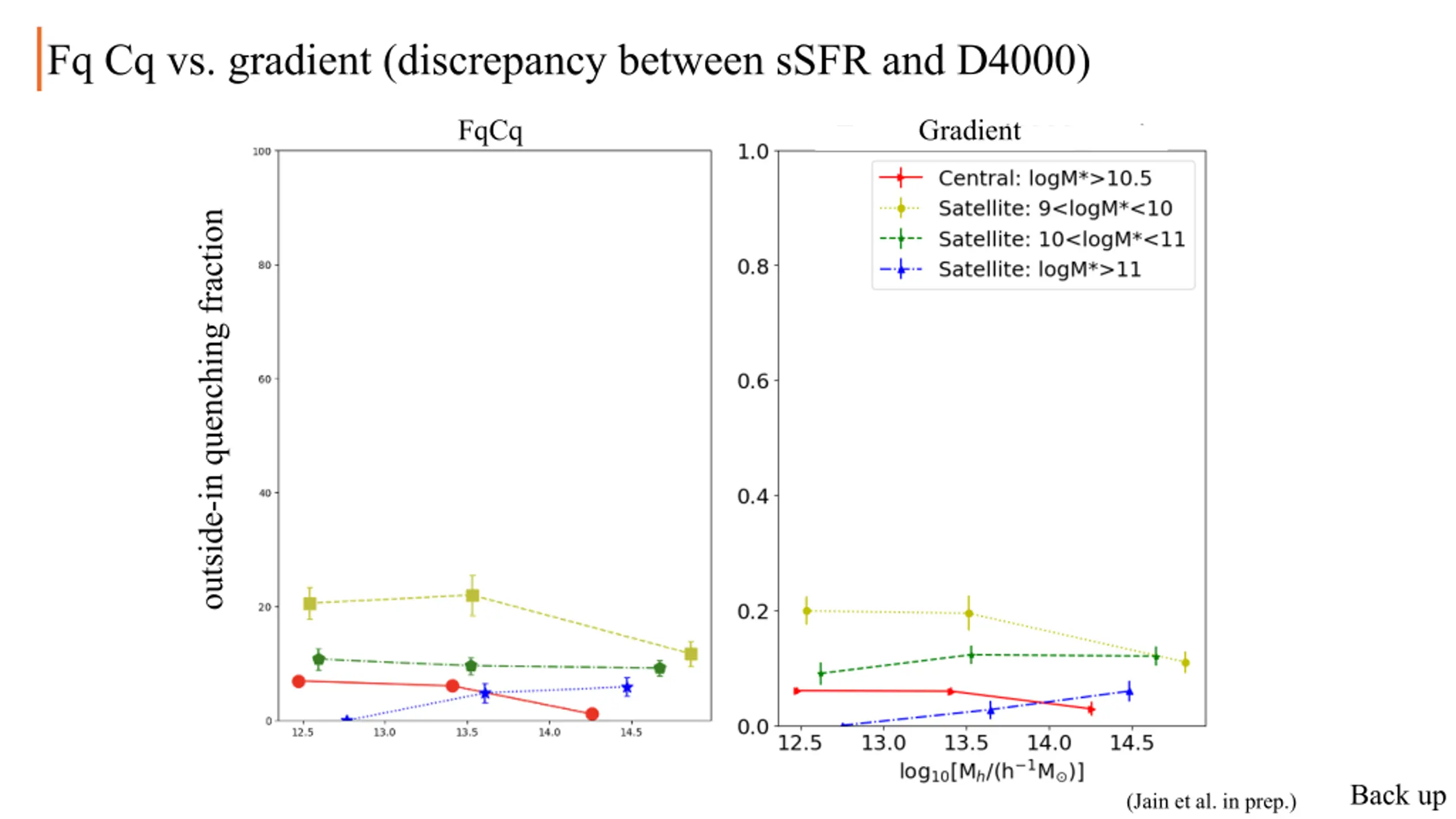 Fq Cq vs. gradient (discrepancy between sSFR and D4000) FqCq Gradient outside-in quenching fraction Back up (Jain et al. in prep.)
