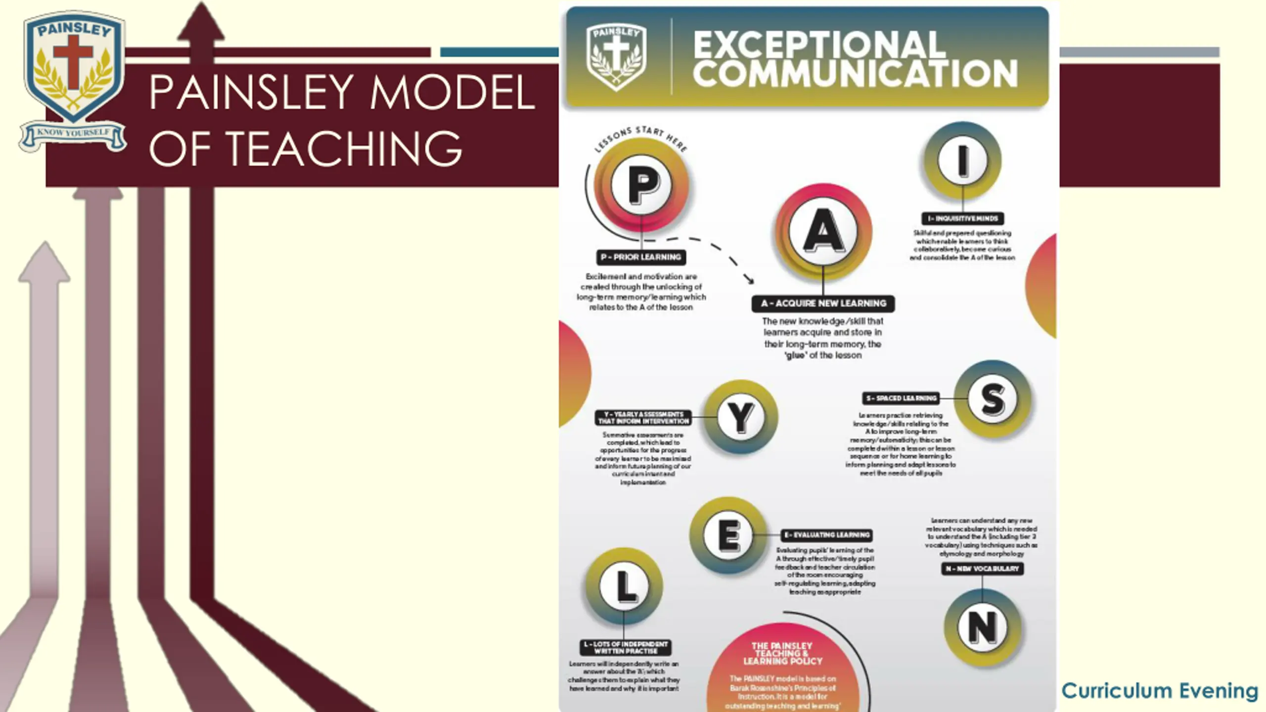 PAINSLEY MODEL OF TEACHING Year 8 Curriculum Evening