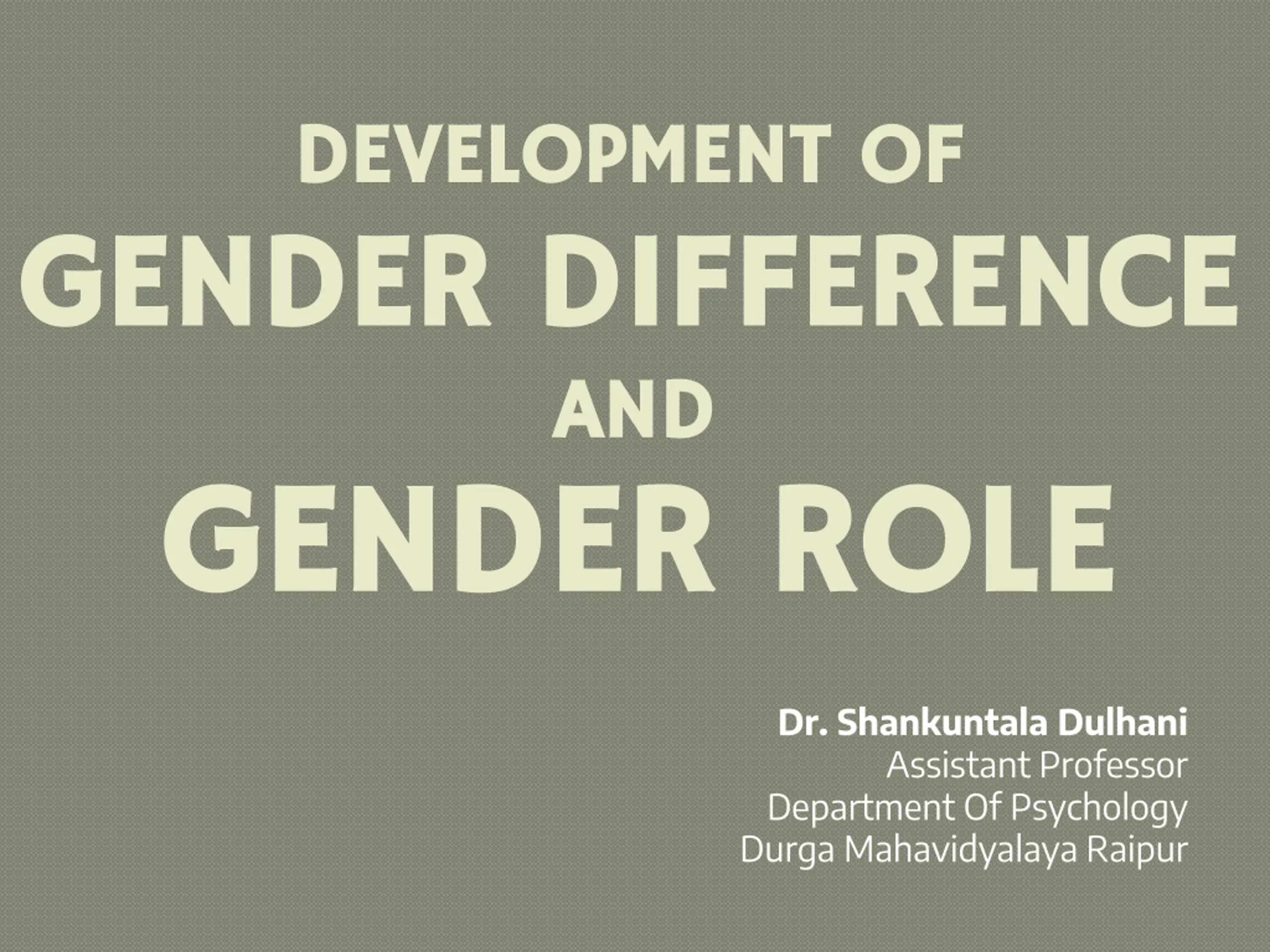 DEVELOPMENT OF DEVELOPMENT OF GENDER DIFFERENCE GENDER DIFFERENCE AND AND GENDER ROLE GENDER ROLE Dr. Shankuntala Dulhani Assistant Professor Department Of Psychology Durga Mahavidyalaya Raipur