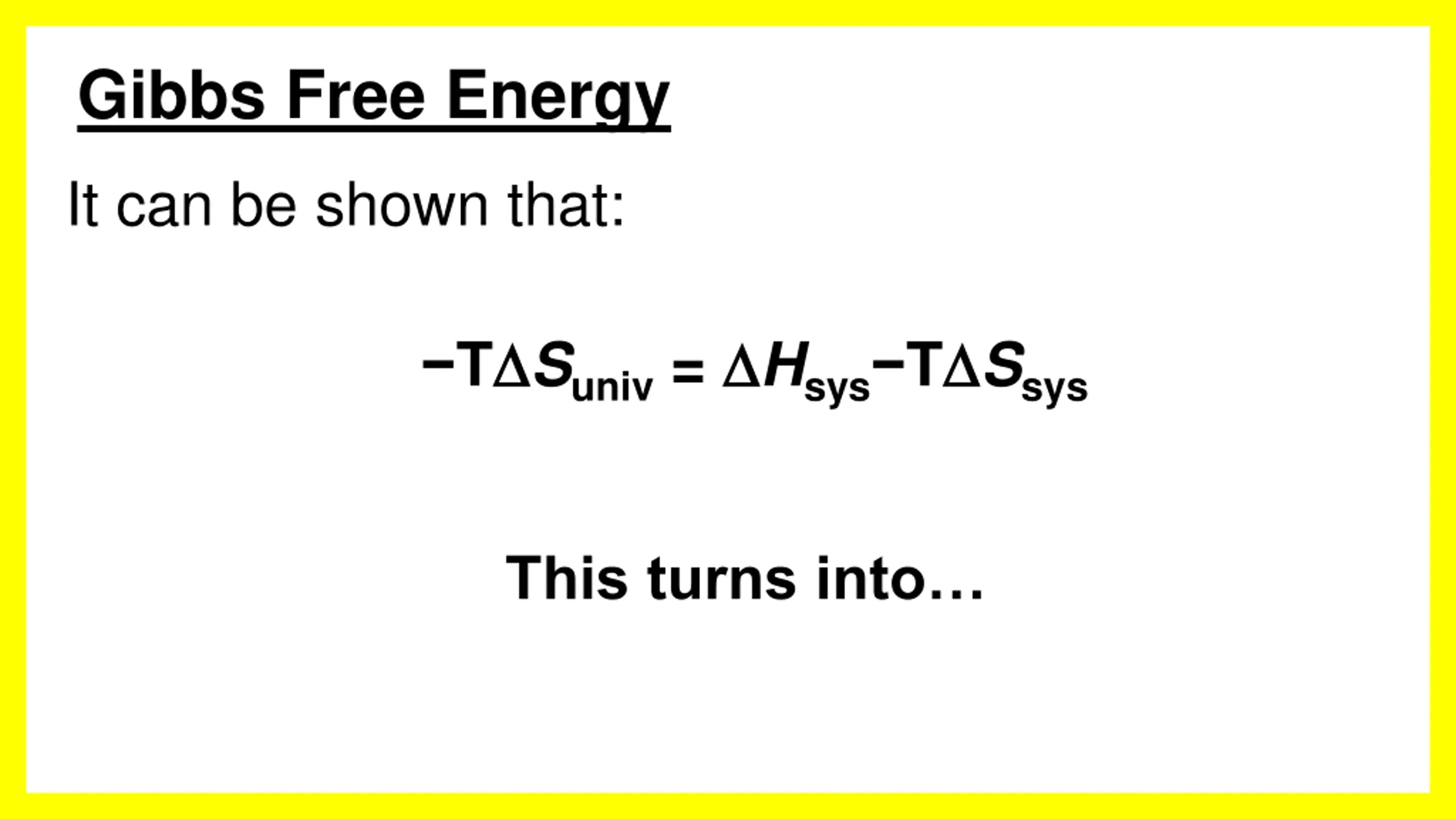 Gibbs Free Energy It can be shown that: T Suniv = Hsys T Ssys This turns into