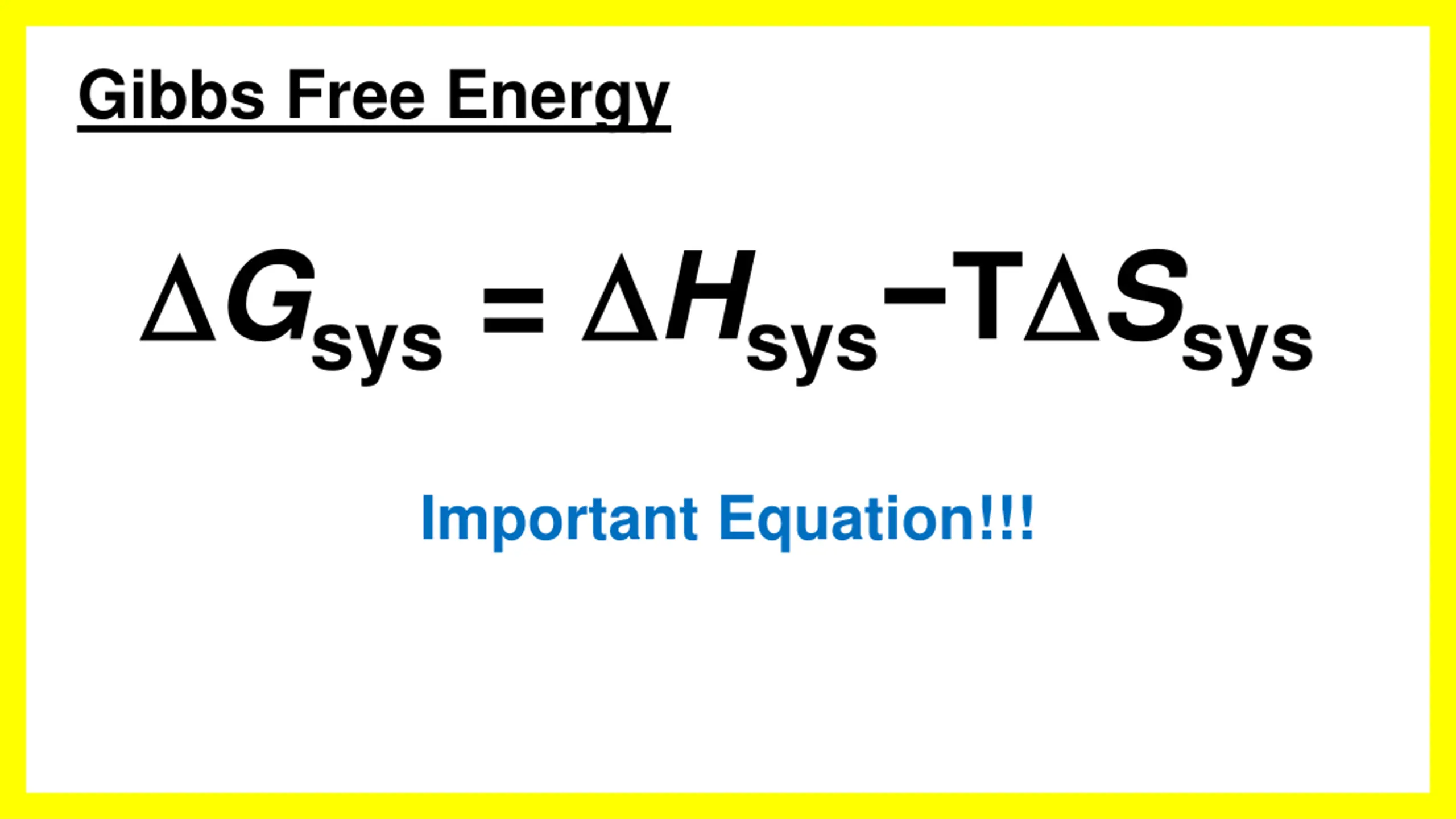 Gibbs Free Energy Gsys = Hsys T Ssys Important Equation!!!