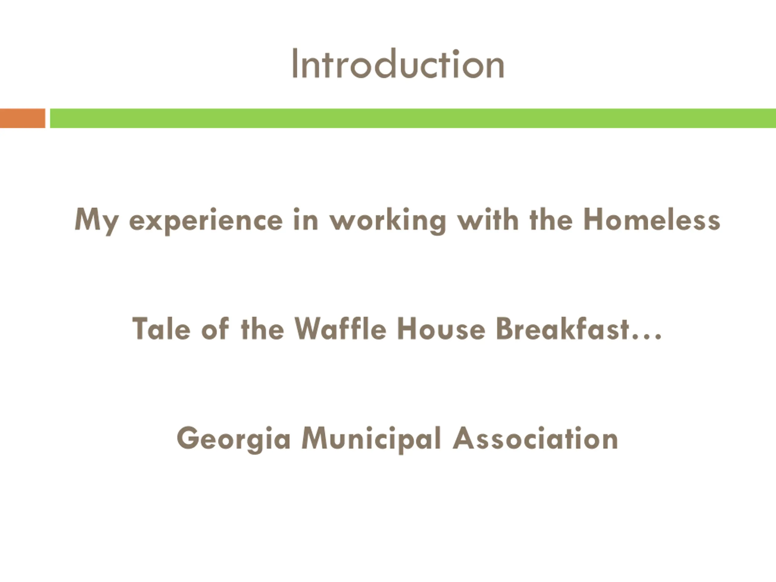 Introduction My experience in working with the Homeless Tale of the Waffle House Breakfast Georgia Municipal Association