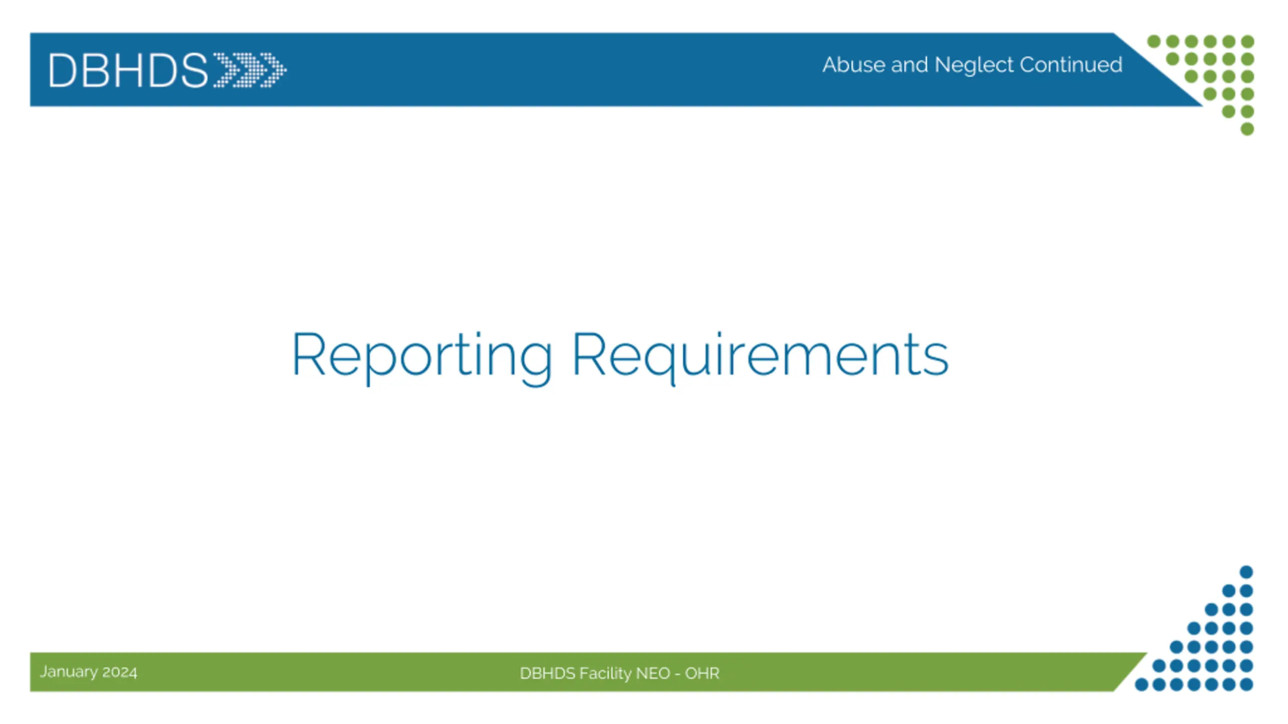 Abuse and Neglect Continued Reporting Requirements January 2024 DBHDS Facility NEO - OHR