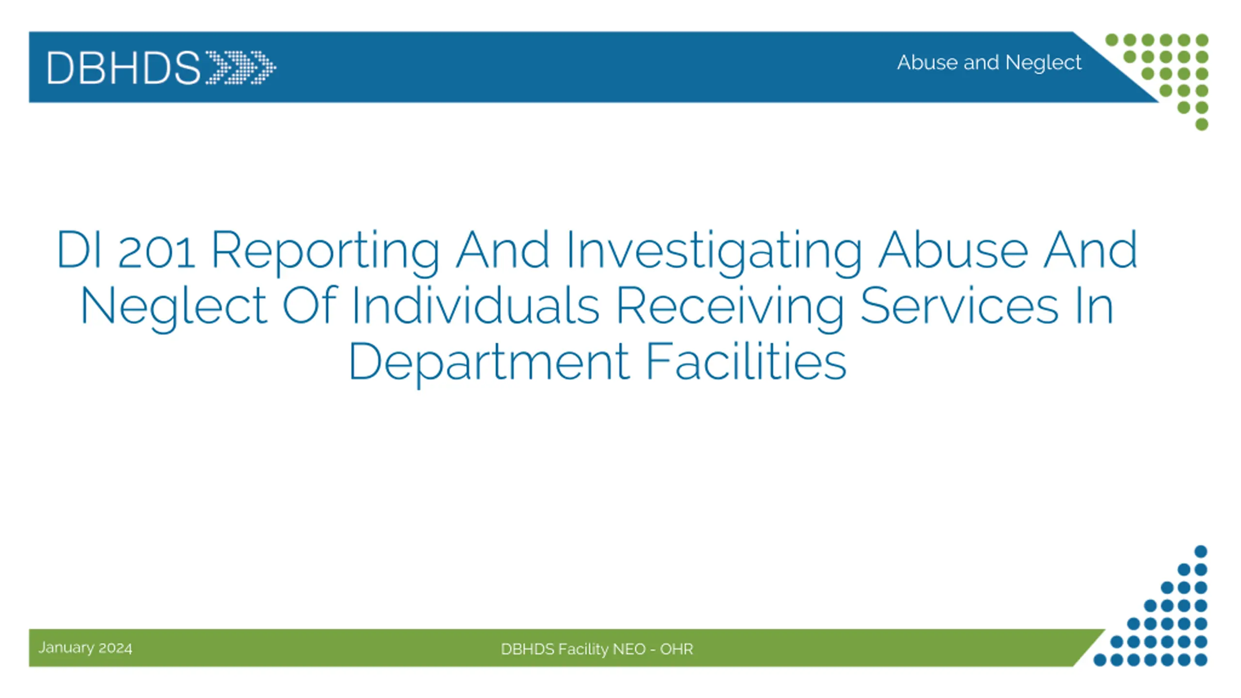 Abuse and Neglect DI 201 Reporting And Investigating Abuse And Neglect Of Individuals Receiving Services In Department Facilities January 2024 DBHDS Facility NEO - OHR