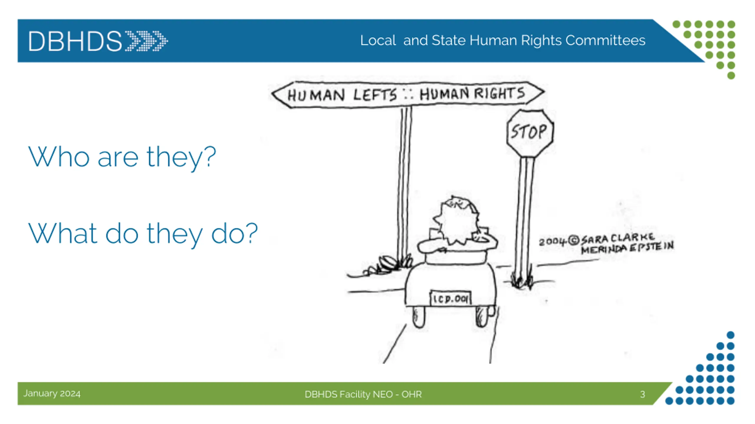 Local and State Human Rights Committees Who are they? What do they do? January 2024 3 DBHDS Facility NEO - OHR