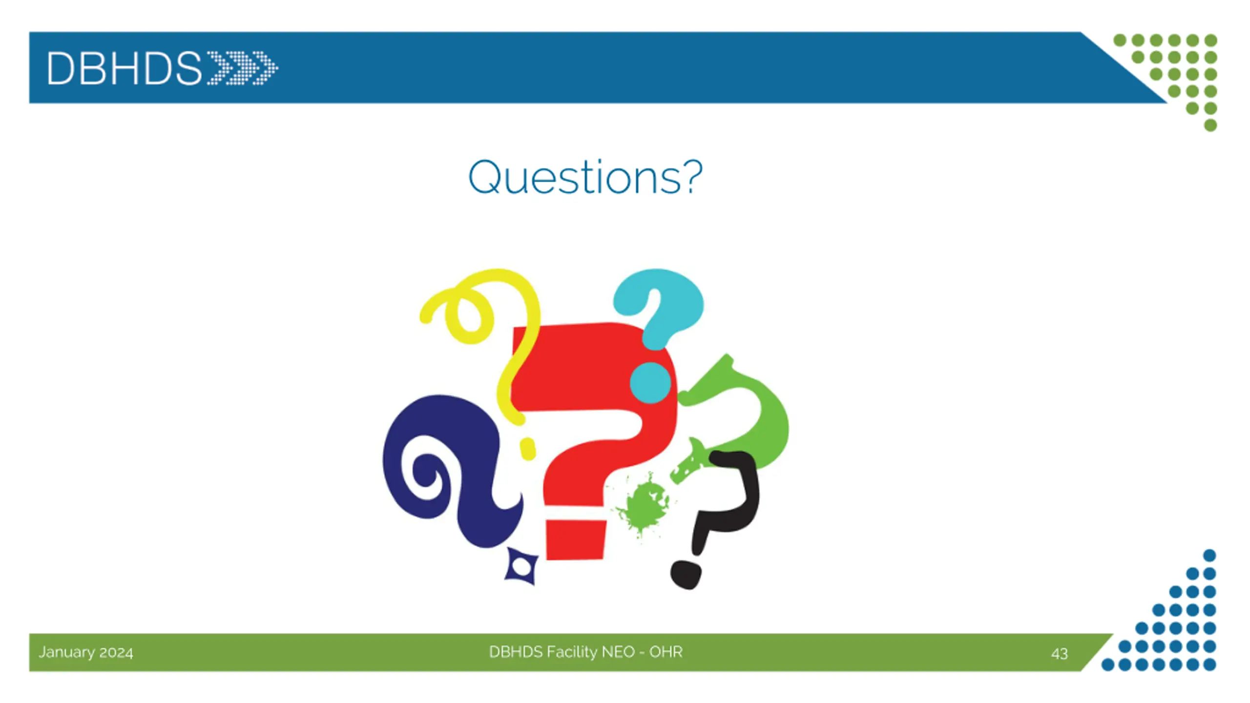 Questions? January 2024 DBHDS Facility NEO - OHR 43