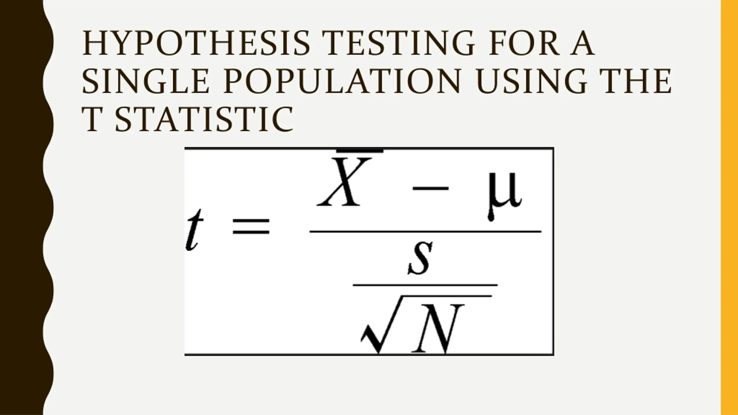 HYPOTHESIS TESTING FOR A SINGLE POPULATION USING THE T STATISTIC