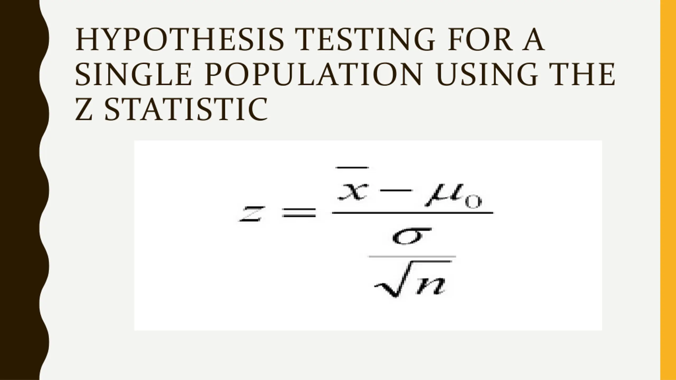 HYPOTHESIS TESTING FOR A SINGLE POPULATION USING THE Z STATISTIC
