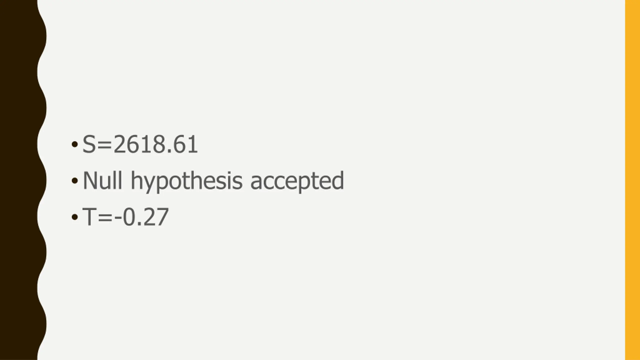 S=2618.61 Null hypothesis accepted T=-0.27