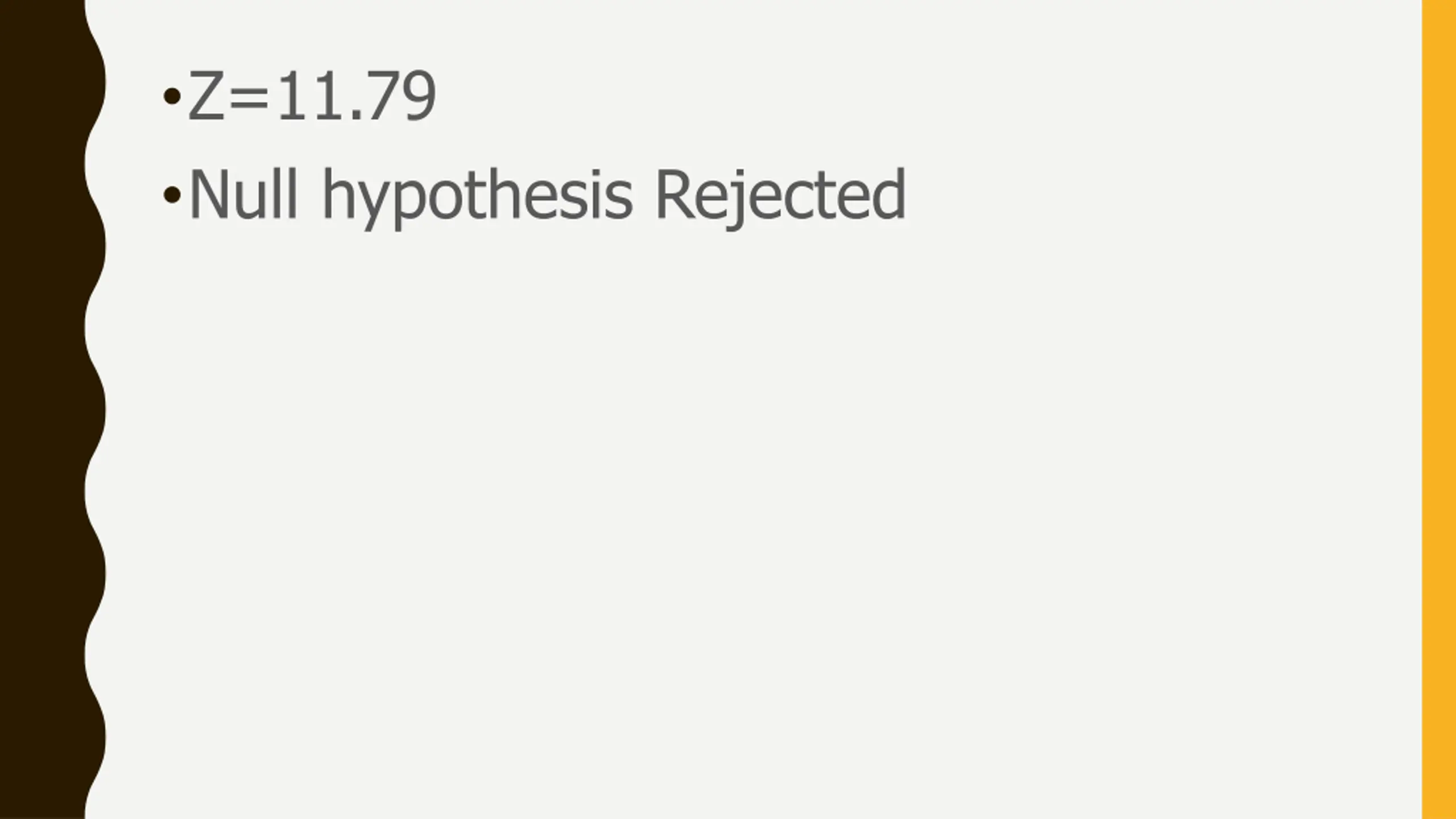 Z=11.79 Null hypothesis Rejected