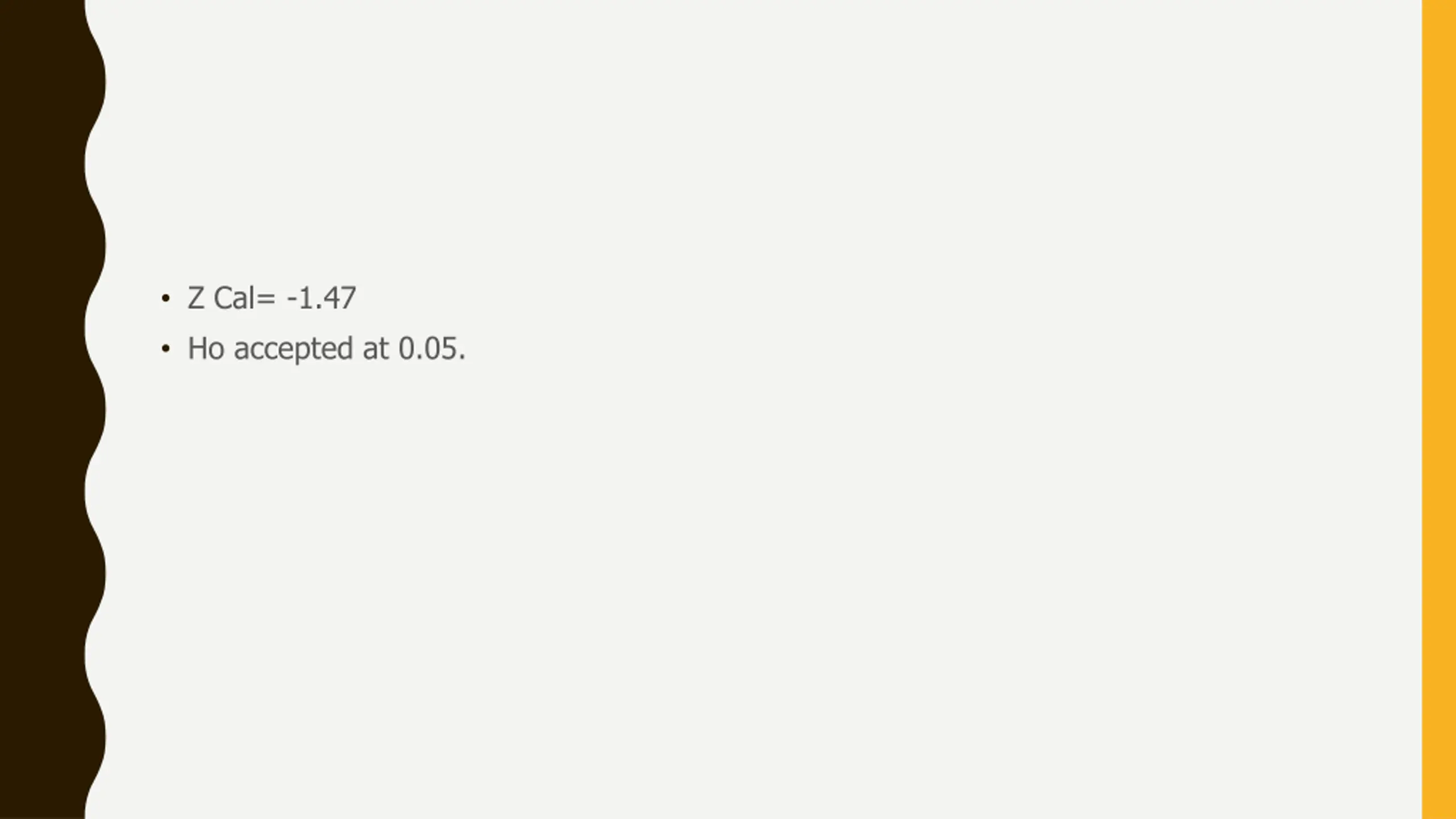 Z Cal= -1.47 Ho accepted at 0.05.