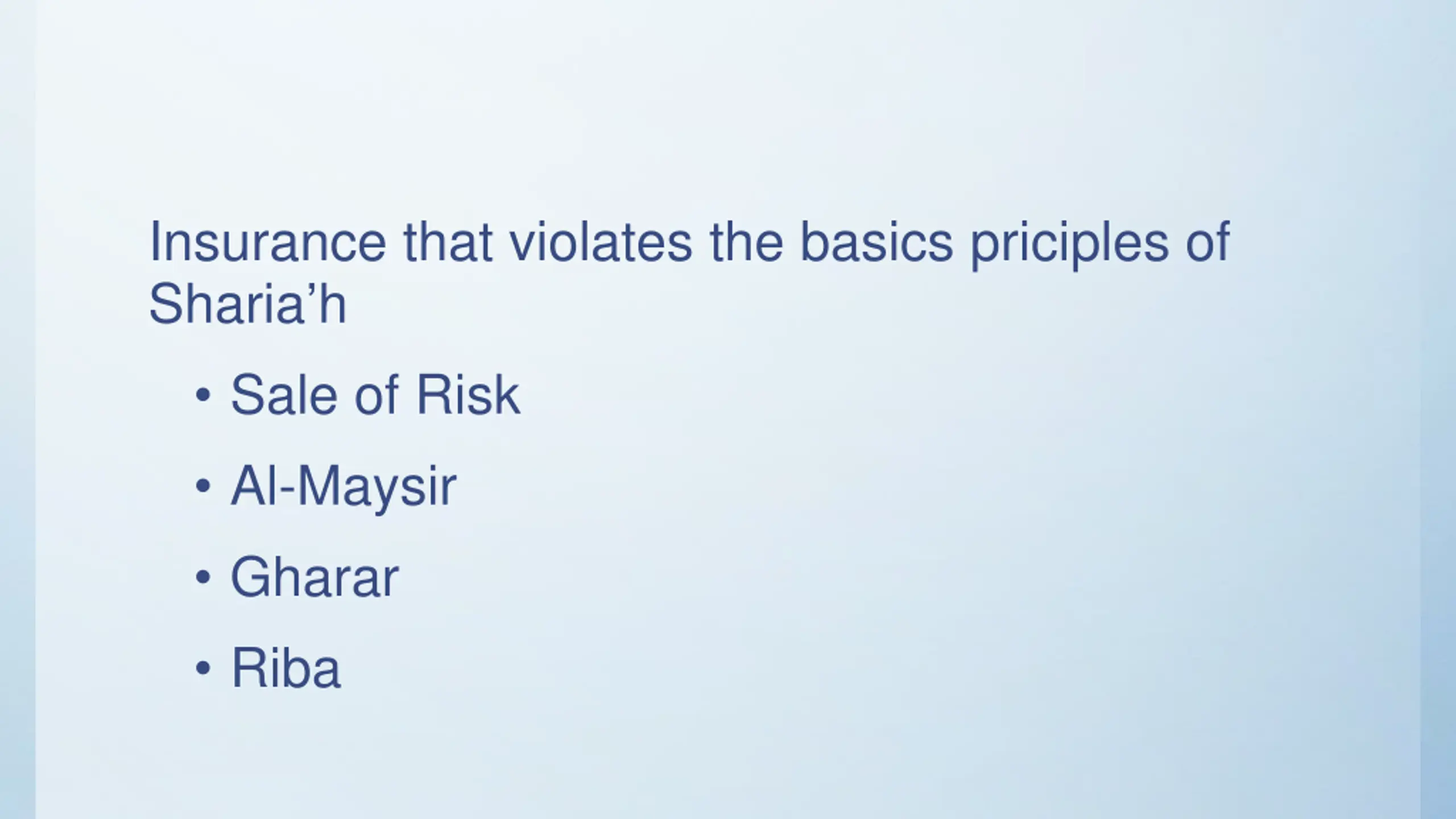 Insurance that violates the basics priciples of Sharia h Sale of Risk Al-Maysir Gharar Riba