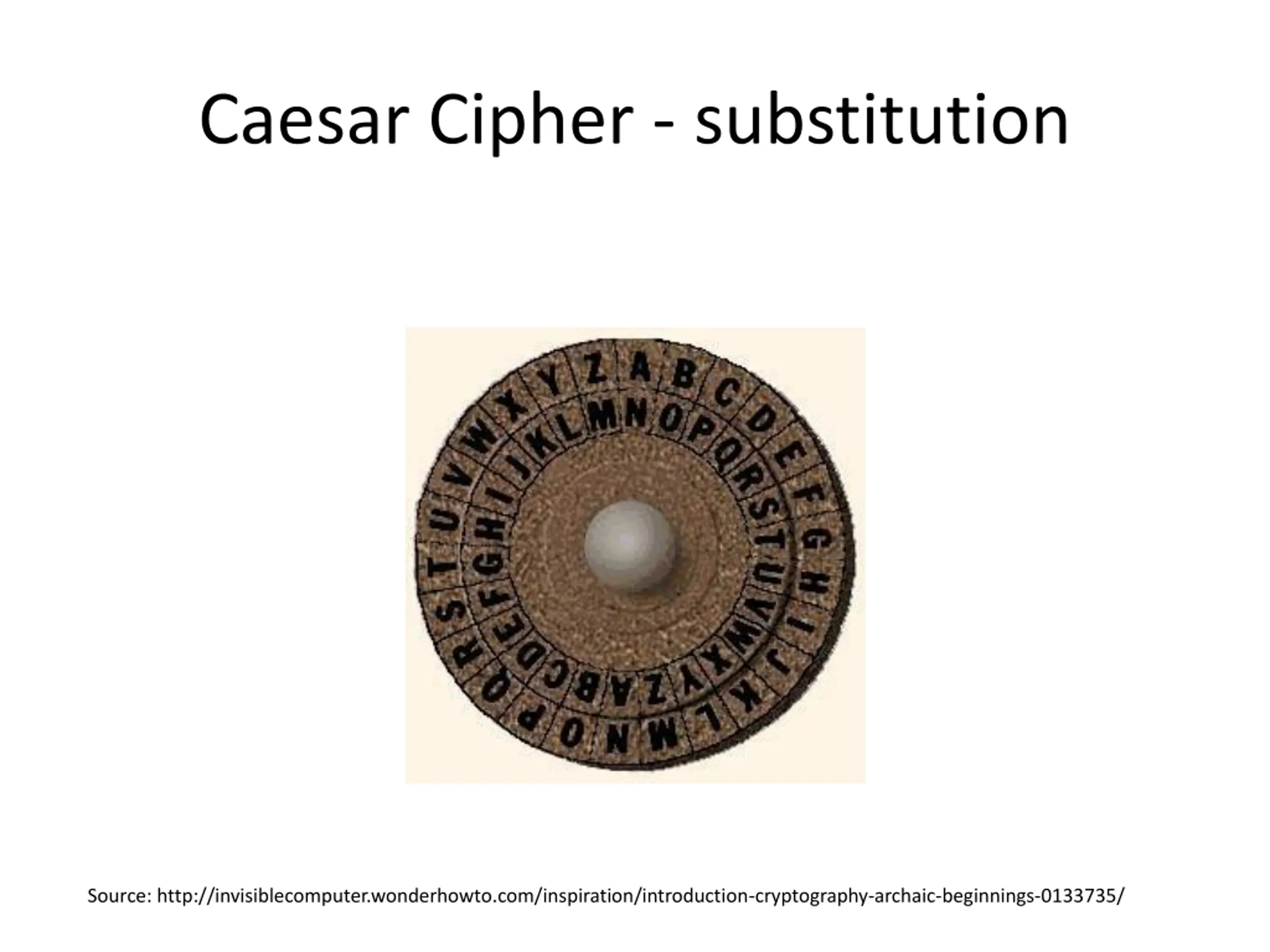 Caesar Cipher - substitution Source: http://invisiblecomputer.wonderhowto.com/inspiration/introduction-cryptography-archaic-beginnings-0133735/