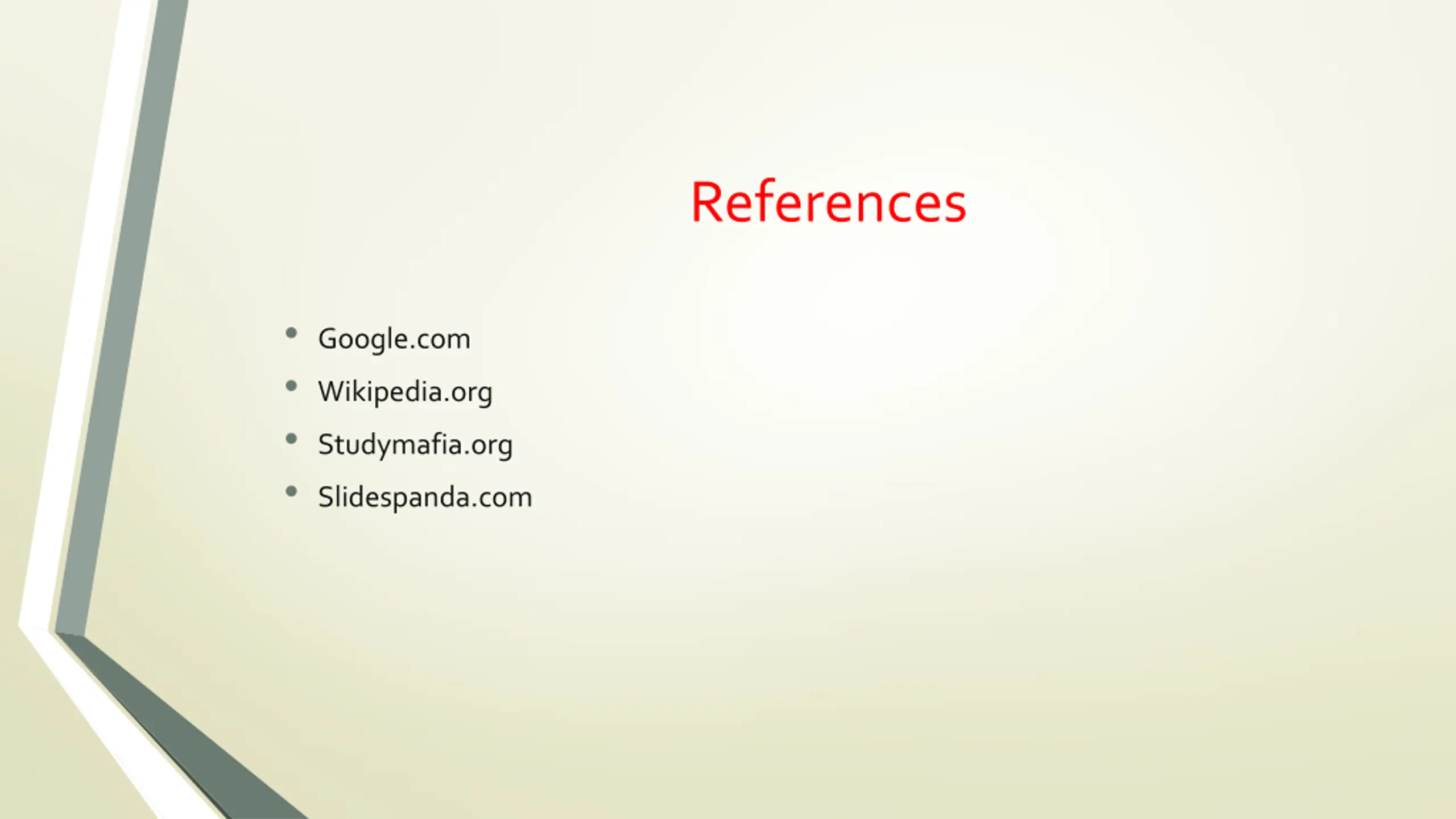 References Google.com Wikipedia.org Studymafia.org Slidespanda.com