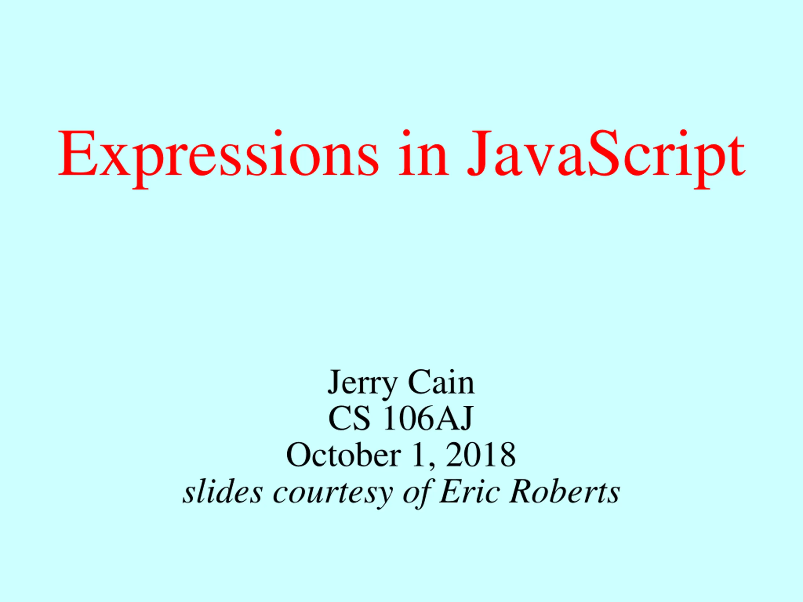 Expressions in JavaScript Jerry Cain CS 106AJ October 1, 2018 slides courtesy of Eric Roberts