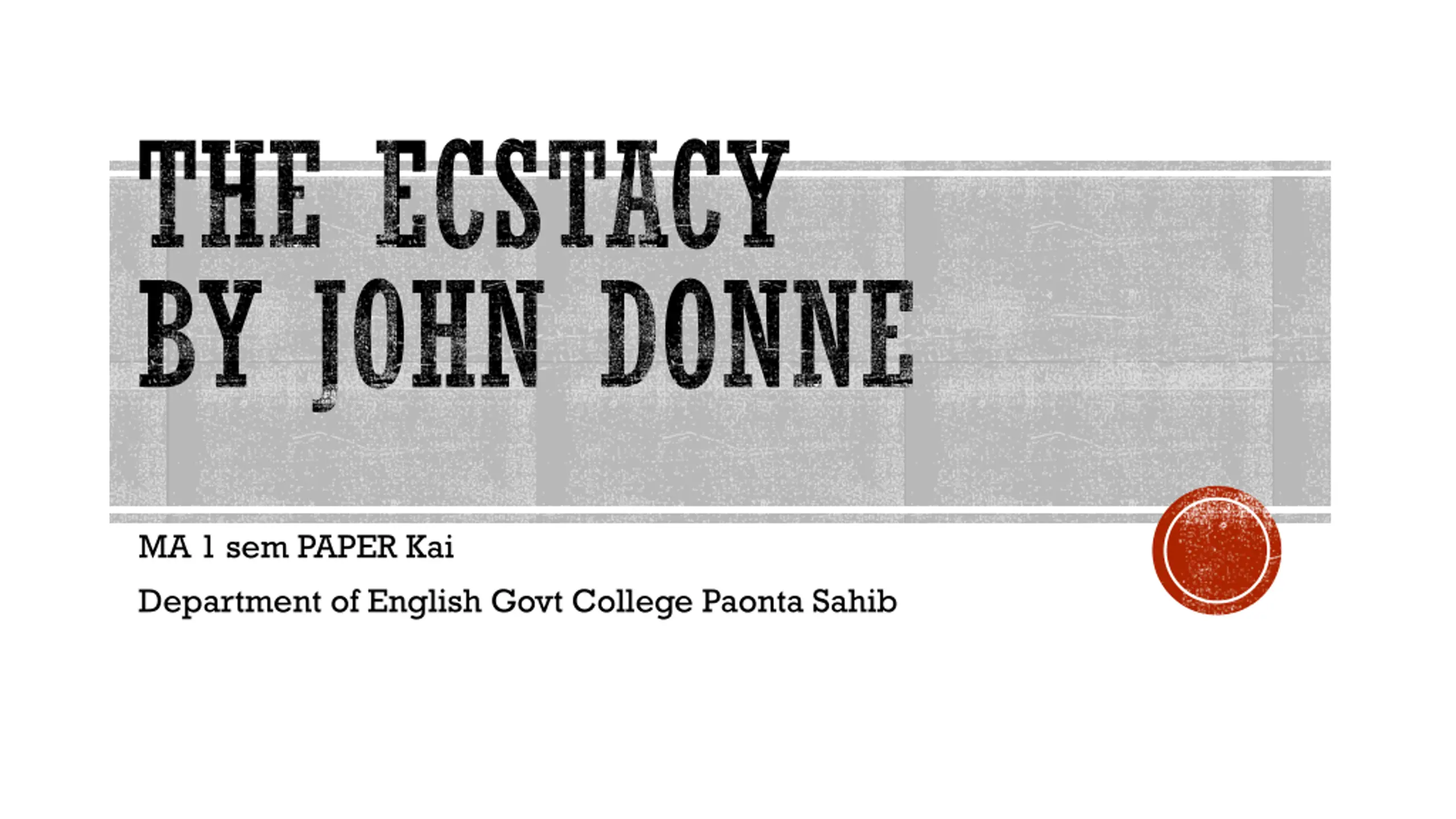 THE ECSTACY BY JOHN DONNE MA 1 sem PAPER Kai Department of English Govt College Paonta Sahib