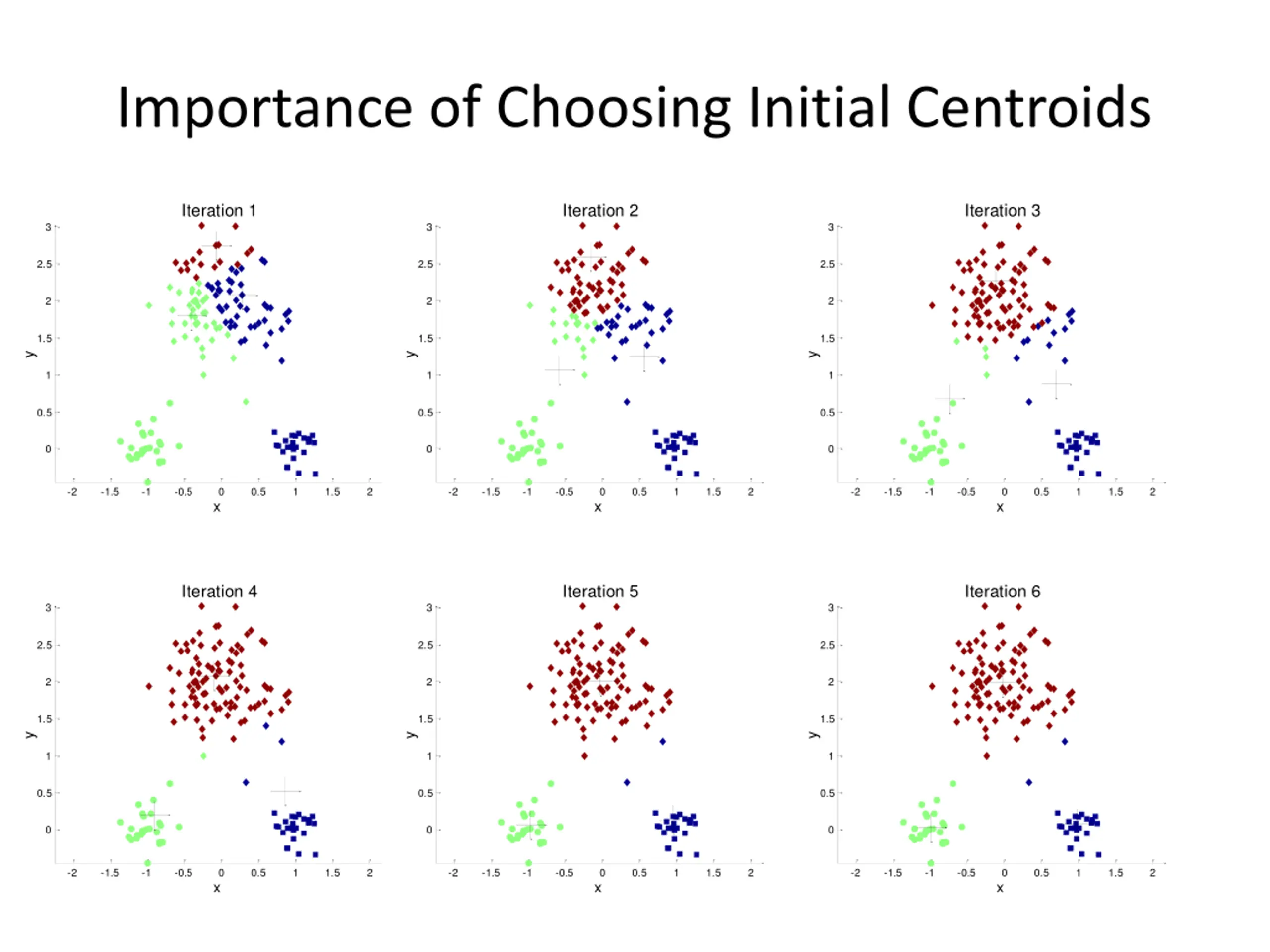 Importance of Choosing Initial Centroids Iteration 1 Iteration 2 Iteration 3 Iteration 4 Iteration 5 Iteration 6 3 3 3 3 3 3 2.5 2.5 2.5 2.5 2.5 2.5 2 2 2 2 2 2 1.5 1.5 1.5 1.5 1.5 1.5 y y y y y y 1 1 1 1 1 1 0.5 0.5 0.5 0.5 0.5 0.5 0 0 0 0 0 0 -2 -2 -2 -2 -2 -2 -1.5 -1.5 -1.5 -1.5 -1.5 -1.5 -1 -1 -1 -1 -1 -1 -0.5 -0.5 -0.5 -0.5 -0.5 -0.5 0 0 0 0 0 0 0.5 0.5 0.5 0.5 0.5 0.5 1 1 1 1 1 1 1.5 1.5 1.5 1.5 1.5 1.5 2 2 2 2 2 2 x x x x x x