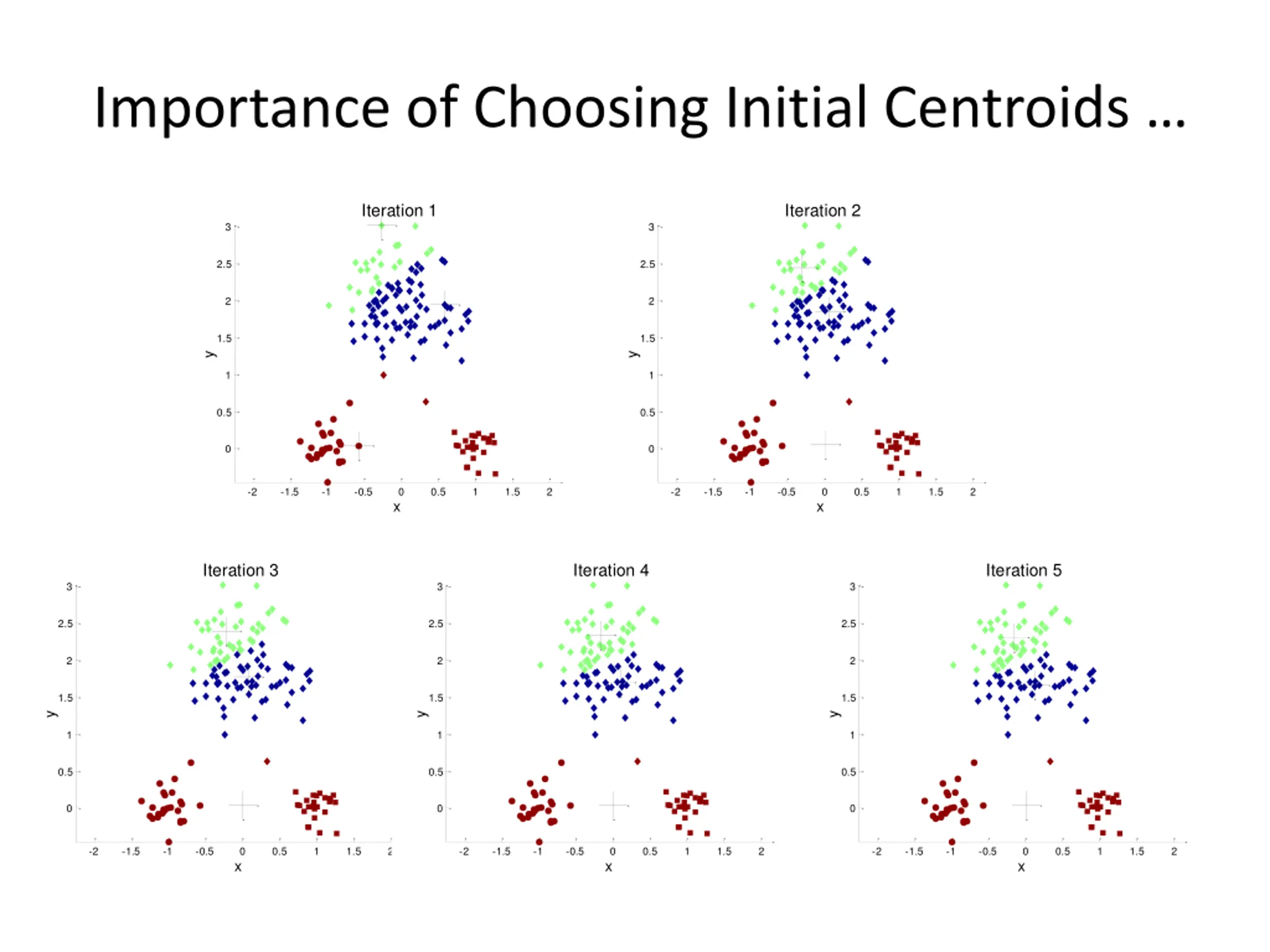 Importance of Choosing Initial Centroids Iteration 1 Iteration 2 Iteration 3 Iteration 4 Iteration 5 3 3 3 3 3 2.5 2.5 2.5 2.5 2.5 2 2 2 2 2 1.5 1.5 1.5 1.5 1.5 y y y y y 1 1 1 1 1 0.5 0.5 0.5 0.5 0.5 0 0 0 0 0 -2 -2 -2 -2 -2 -1.5 -1.5 -1.5 -1.5 -1.5 -1 -1 -1 -1 -1 -0.5 -0.5 -0.5 -0.5 -0.5 0 0 0 0 0 0.5 0.5 0.5 0.5 0.5 1 1 1 1 1 1.5 1.5 1.5 1.5 1.5 2 2 2 2 2 x x x x x