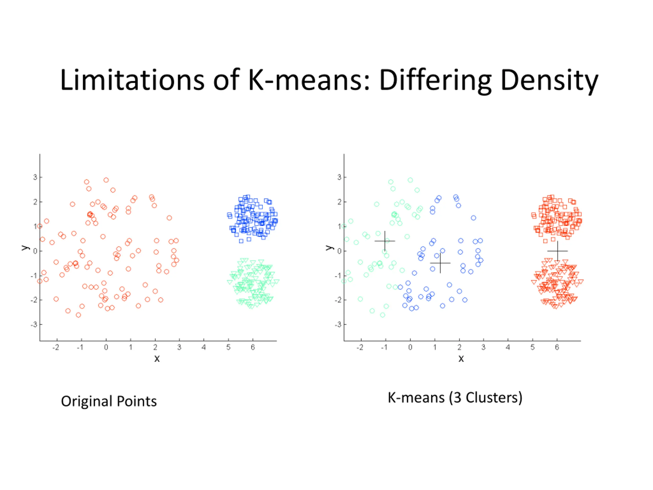 Limitations of K-means: Differing Density K-means (3 Clusters) Original Points