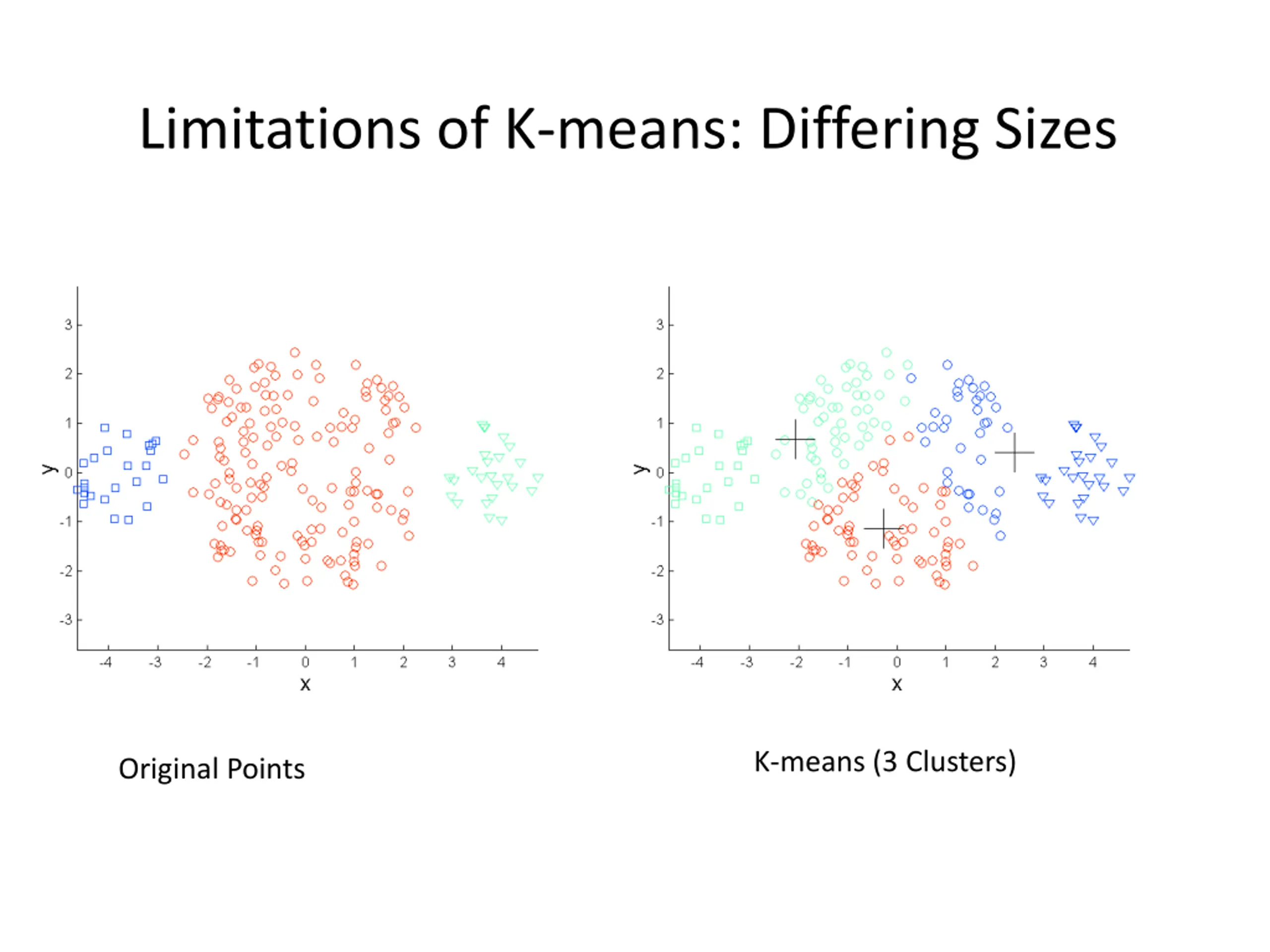Limitations of K-means: Differing Sizes K-means (3 Clusters) Original Points