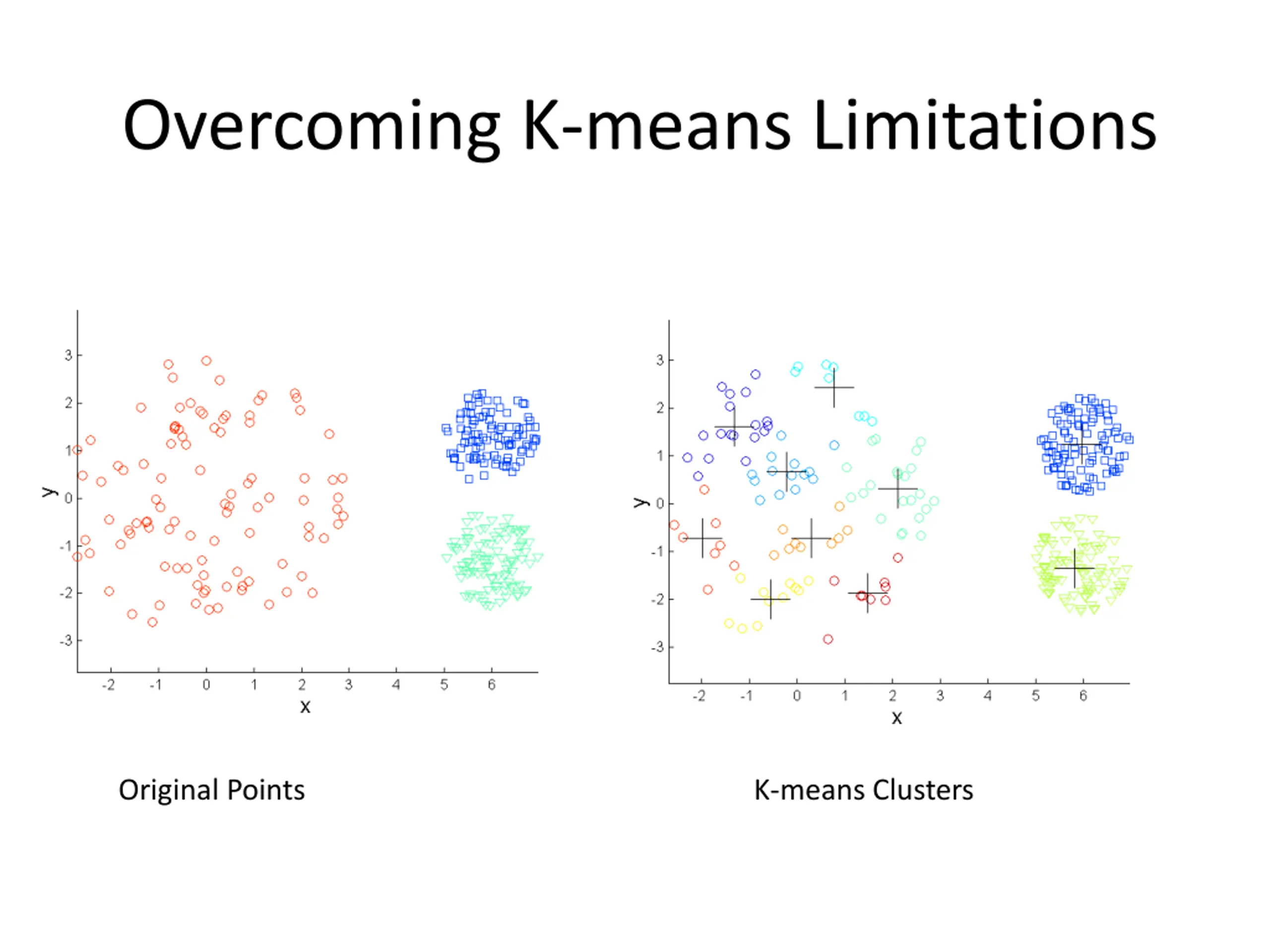 Overcoming K-means Limitations Original Points K-means Clusters