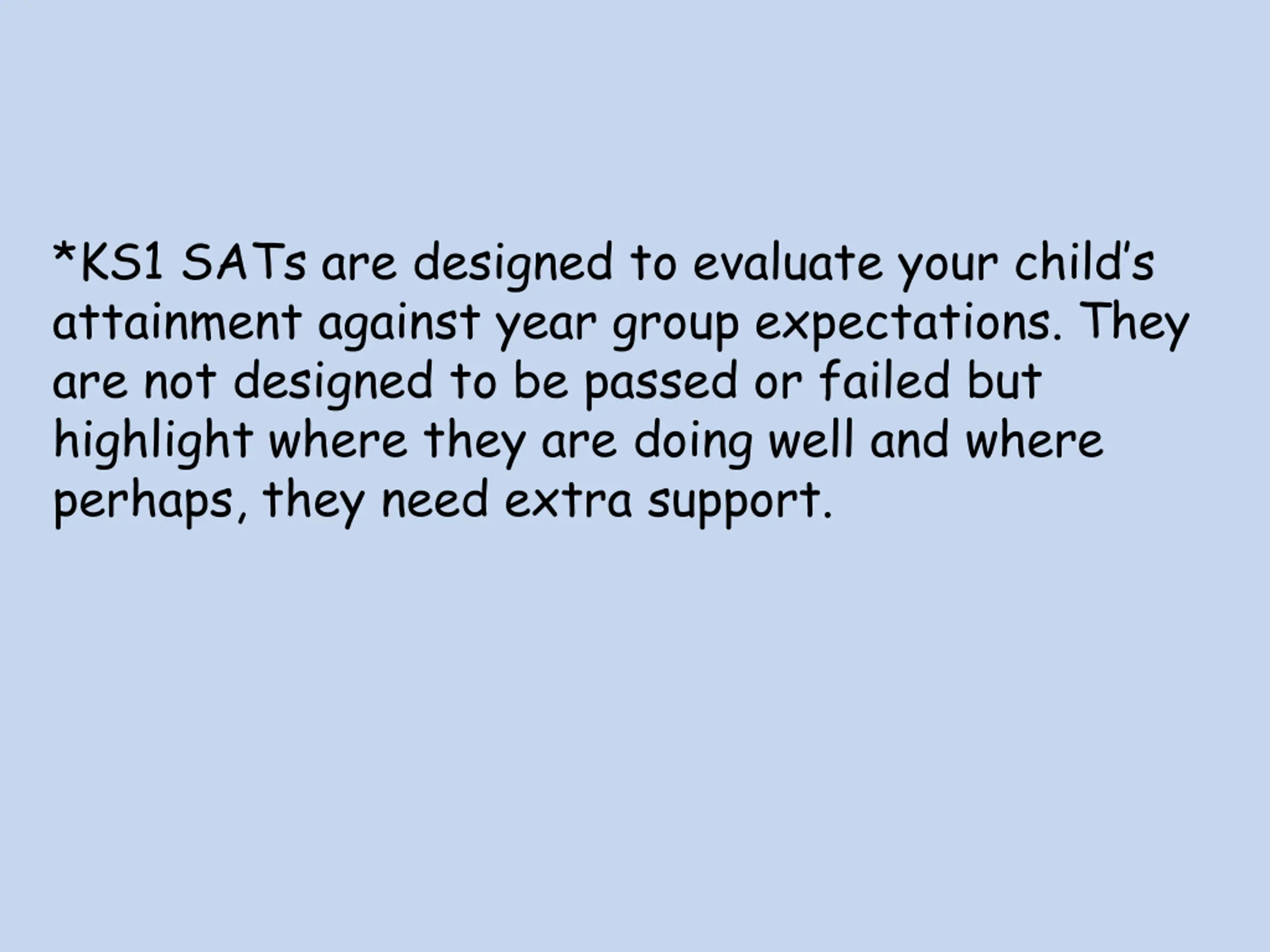 *KS1 SATs are designed to evaluate your childs attainment against year group expectations. They are not designed to be passed or failed but highlight where they are doing well and where perhaps, they need extra support.