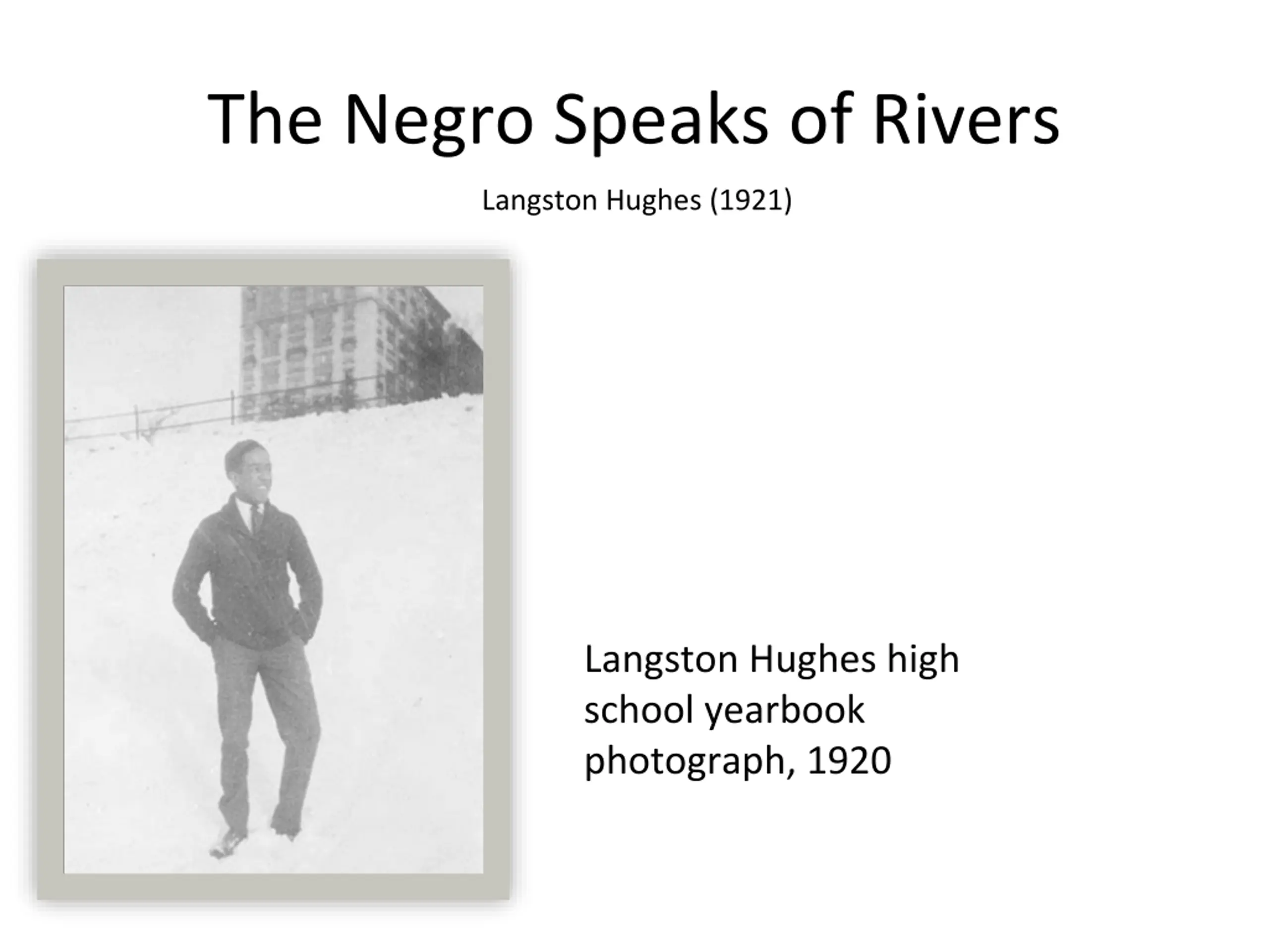 - The Negro Speaks of Rivers Langston Hughes (1921) Langston Hughes high school yearbook photograph, 1920