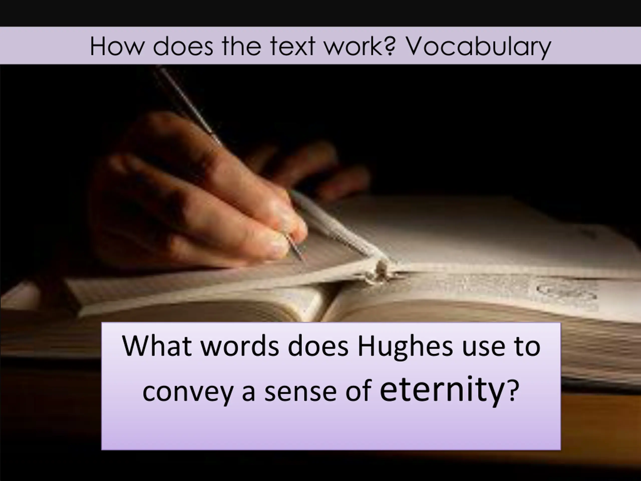 - How does the text work? Vocabulary What words does Hughes use to convey a sense of eternity?