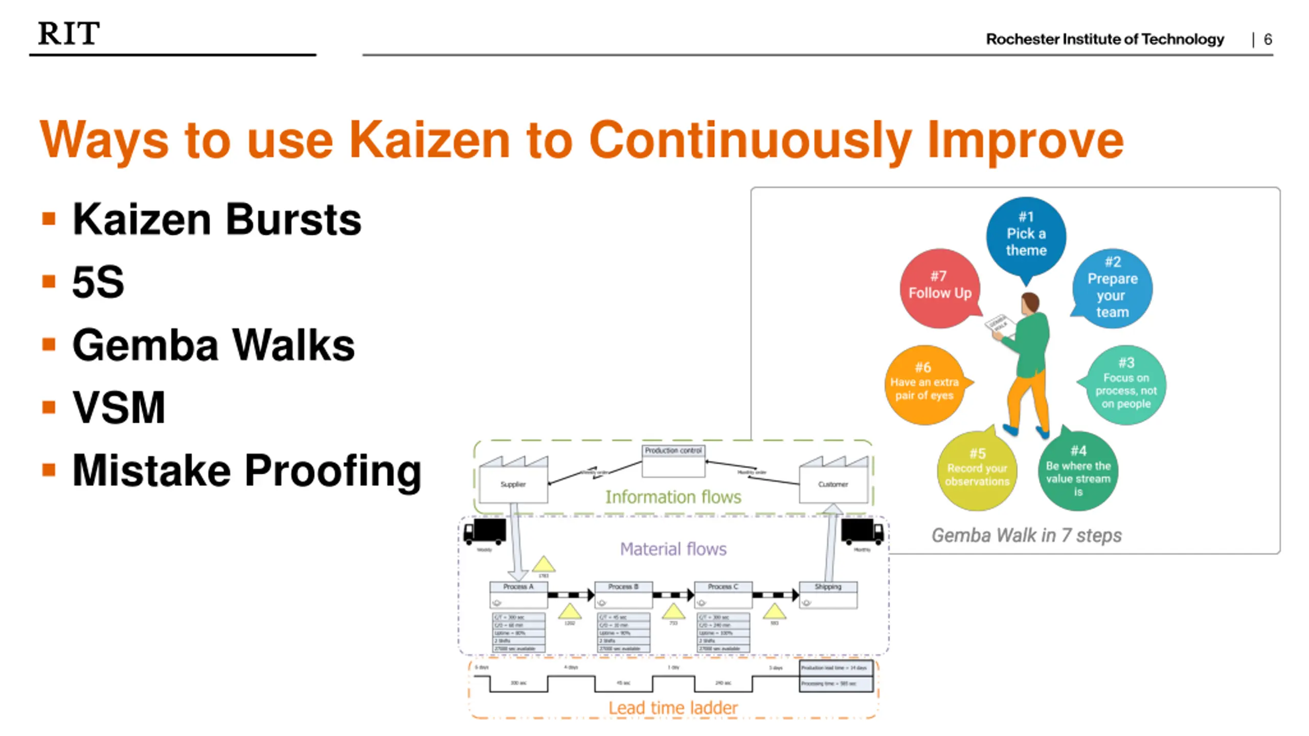 | 6 Ways to use Kaizen to Continuously Improve Kaizen Bursts 5S Gemba Walks VSM Mistake Proofing