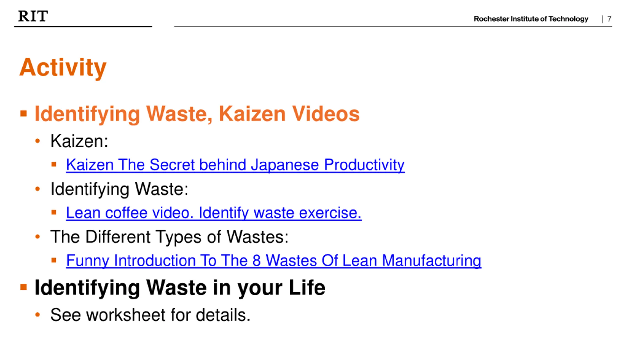 | 7 Activity Identifying Waste, Kaizen Videos Kaizen: Kaizen The Secret behind Japanese Productivity Identifying Waste: Lean coffee video. Identify waste exercise. The Different Types of Wastes: Funny Introduction To The 8 Wastes Of Lean Manufacturing Identifying Waste in your Life See worksheet for details.