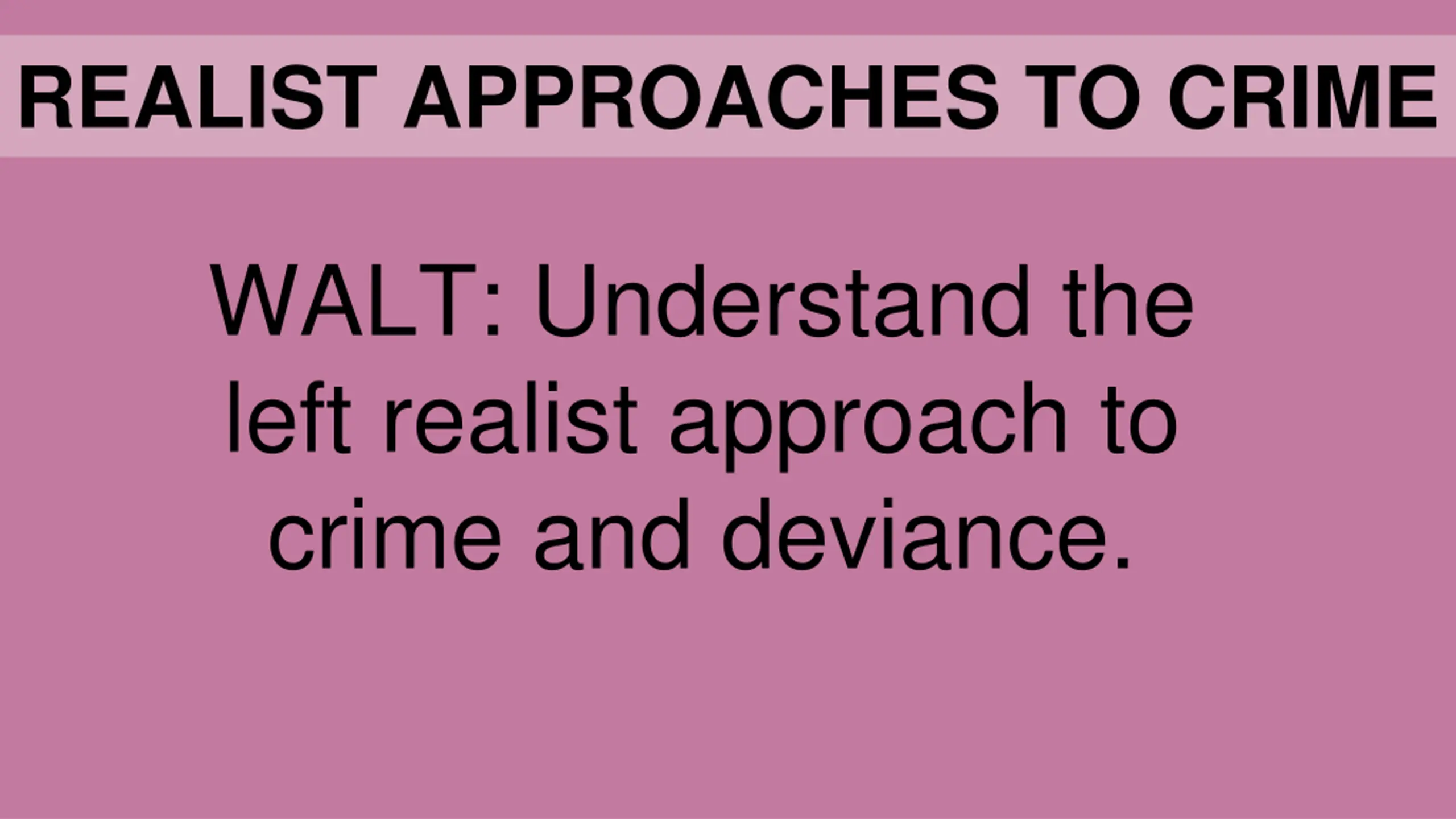 REALIST APPROACHES TO CRIME WALT: Understand the left realist approach to crime and deviance.