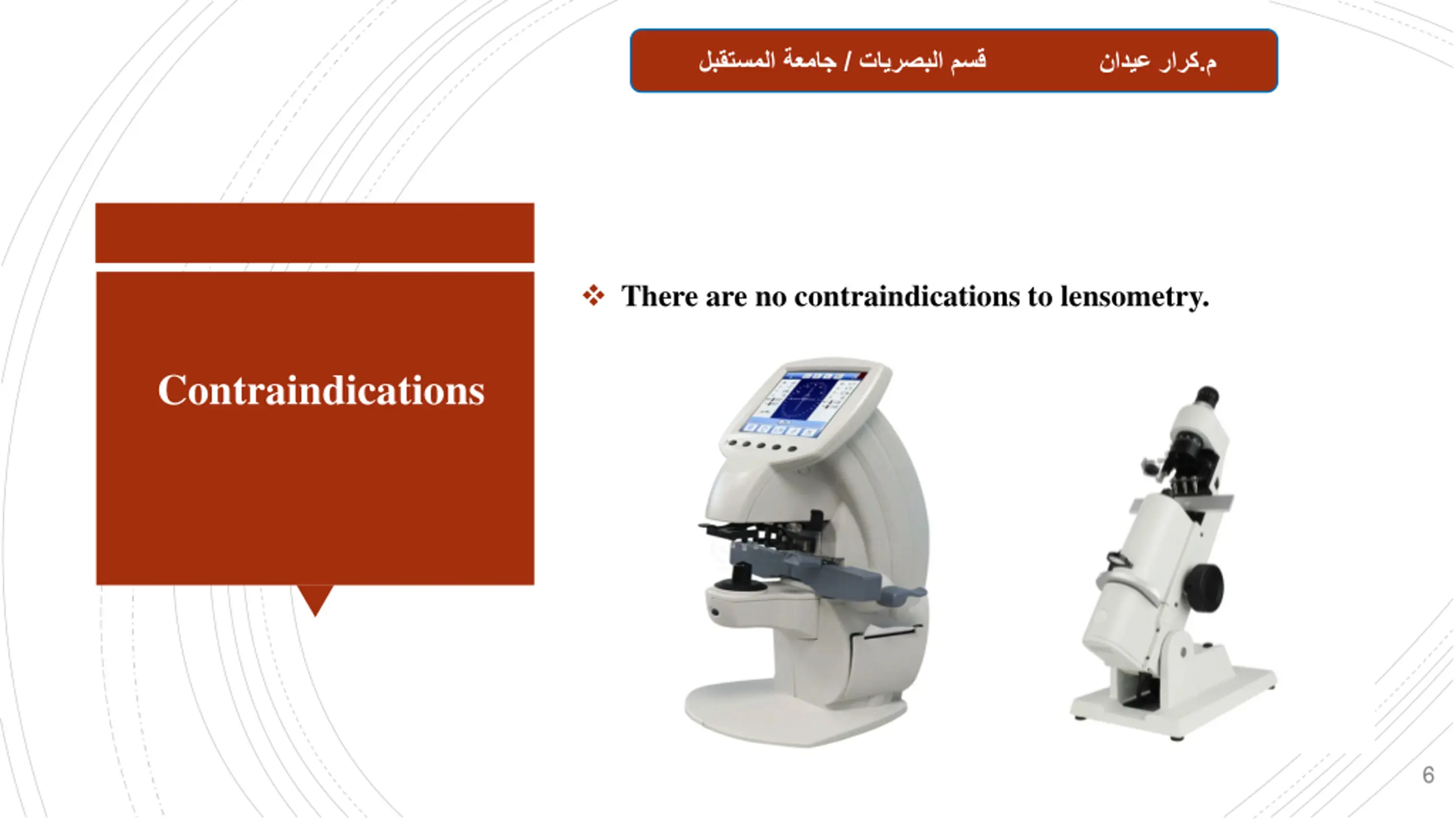/ . The indications for lensometry include measuring the power lens measuring optic center lens Indications measuring prismatic power and direction of a lens measuring marking the optical axis and lens alignment before fitting. 4