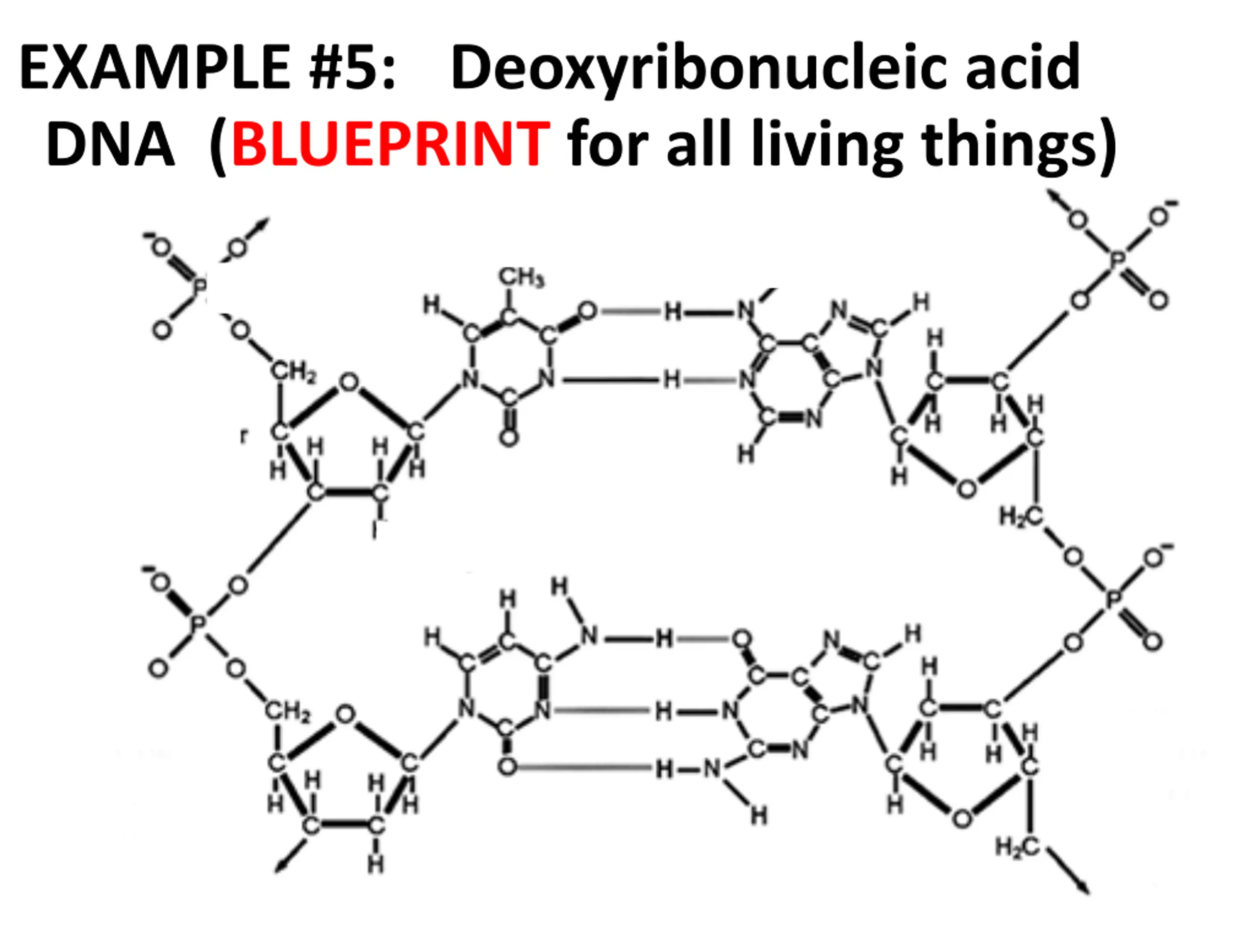 EXAMPLE #5: DNA (BLUEPRINT for all living things) Deoxyribonucleic acid