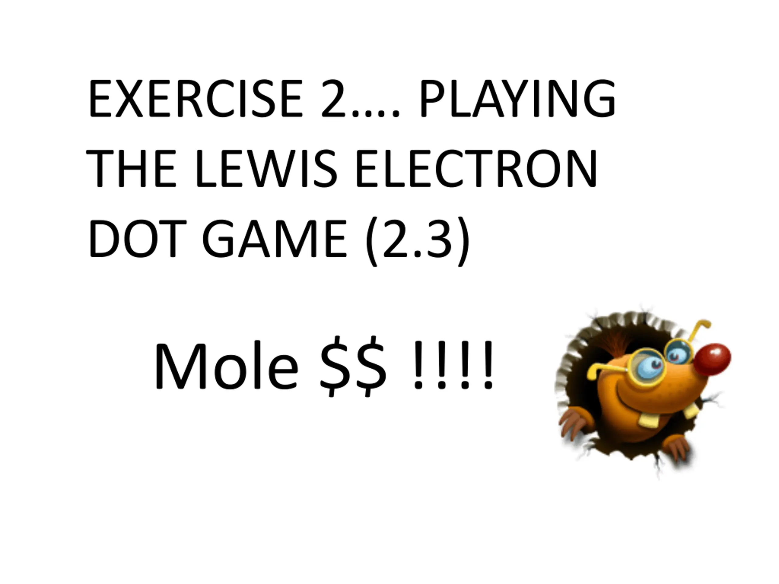 EXERCISE 2. PLAYING THE LEWIS ELECTRON DOT GAME (2.3) Mole $$ !!!!