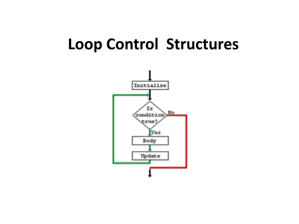 Iterative (loop) control structures Each loop control structure will have Program loop: body of loop. control statement tests certain conditions & then directs repeated execution of statements within the body of loop. Two types: Based on position of control statement. 1) Entry controlled loop: control is tested before the start of the loop. If false, body will not be executed. 2) Exit controlled loop: test is performed at the end of the body. i.e. body of loop executed at least once. 4/29/2025 6