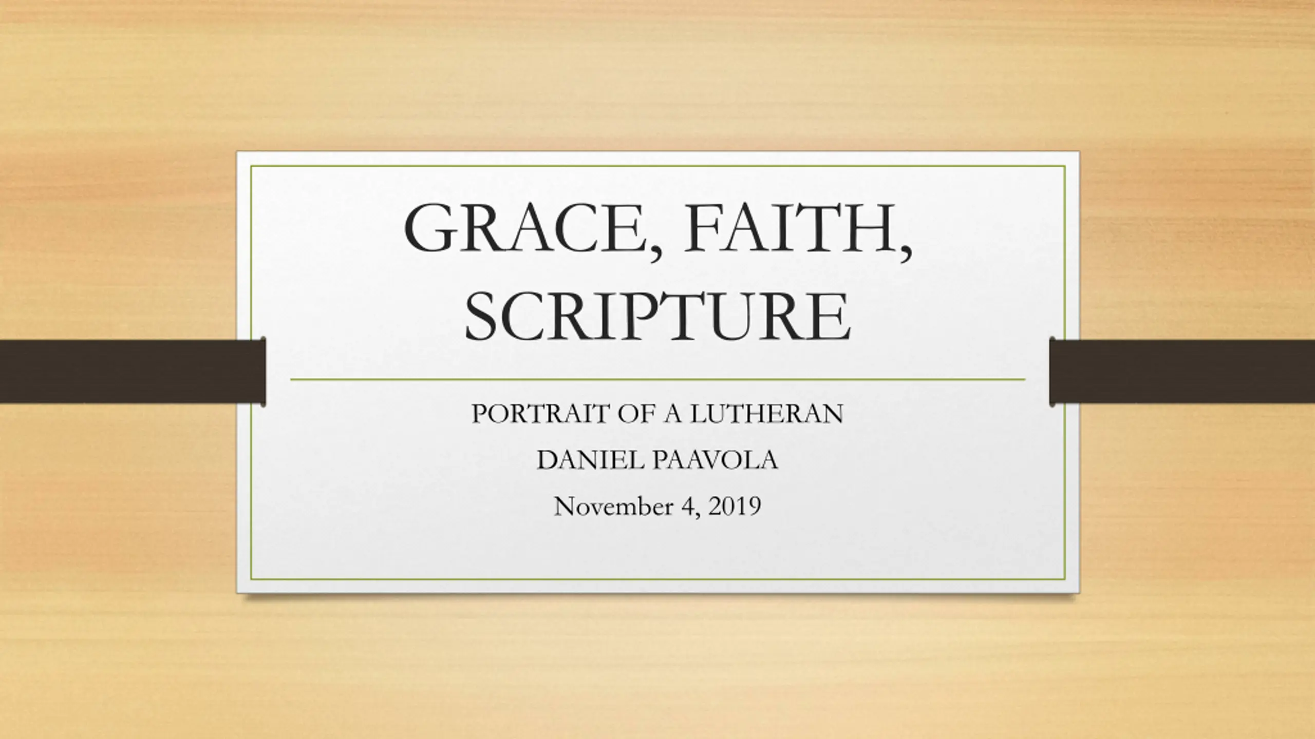 GRACE, FAITH, SCRIPTURE PORTRAIT OF A LUTHERAN DANIEL PAAVOLA November 4, 2019