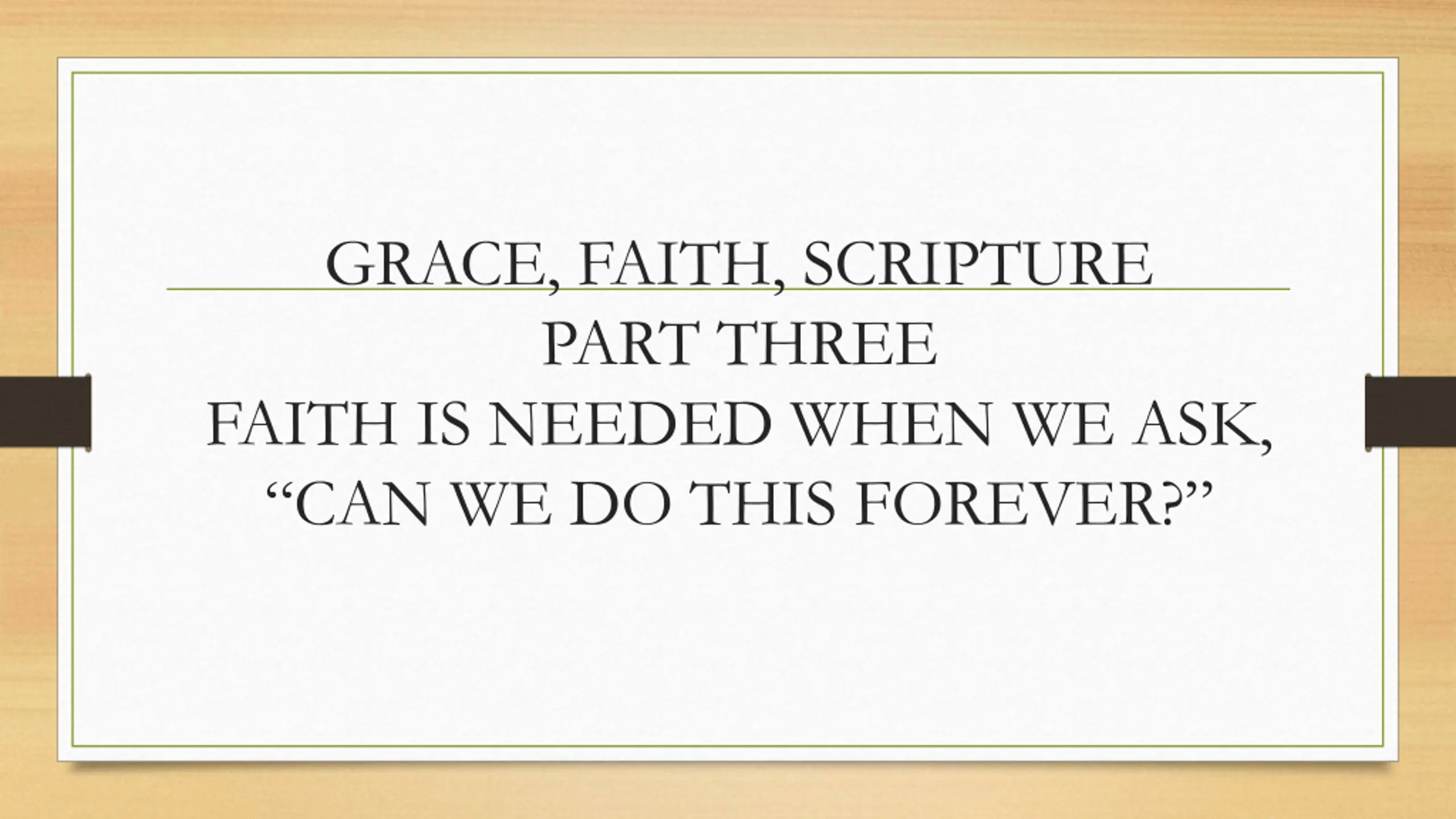 GRACE, FAITH, SCRIPTURE PART THREE FAITH IS NEEDED WHEN WE ASK, CAN WE DO THIS FOREVER?