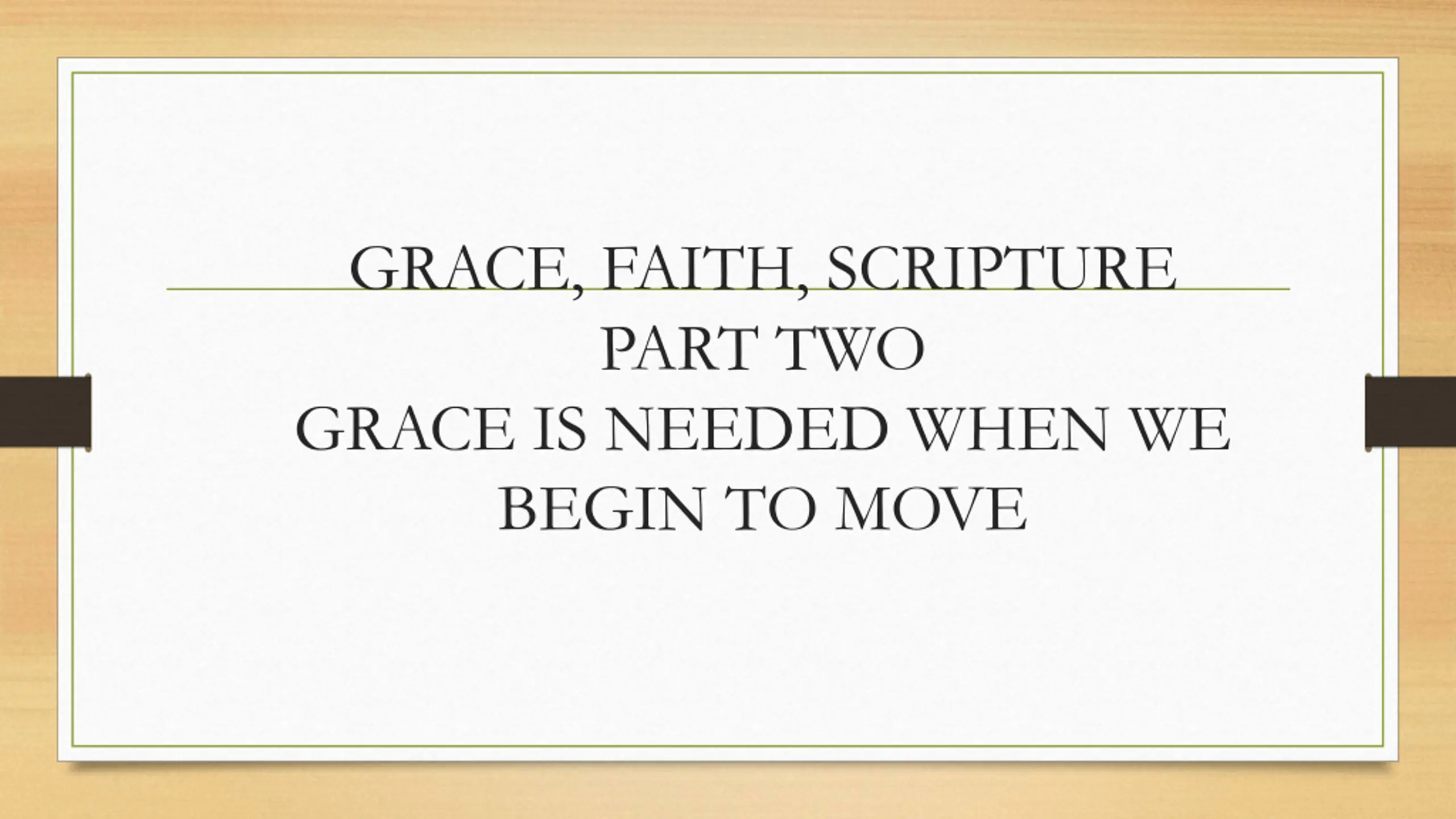 GRACE, FAITH, SCRIPTURE PART TWO GRACE IS NEEDED WHEN WE BEGIN TO MOVE