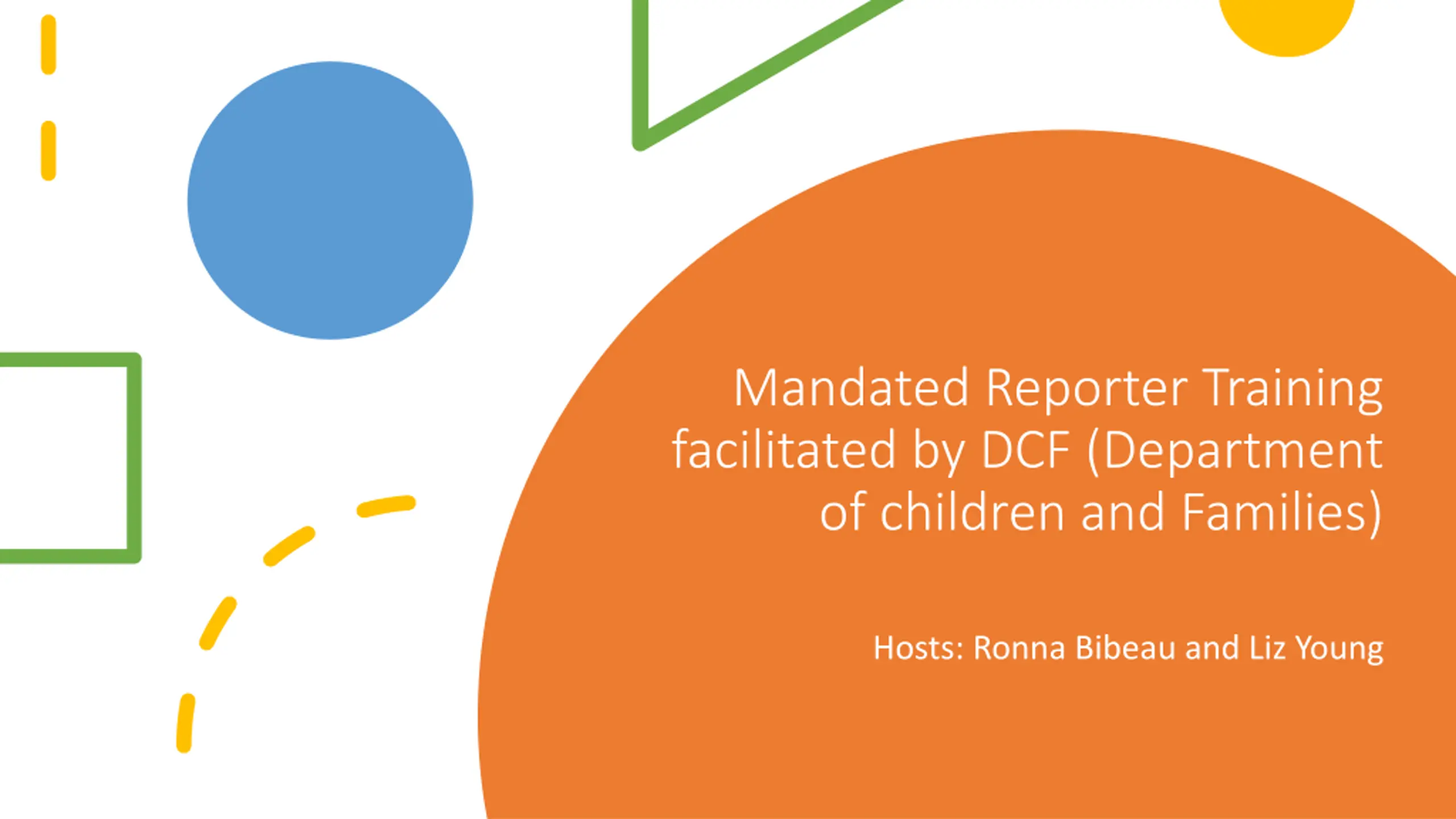 Mandated Reporter Training facilitated by DCF (Department of children and Families) Hosts: Ronna Bibeau and Liz Young