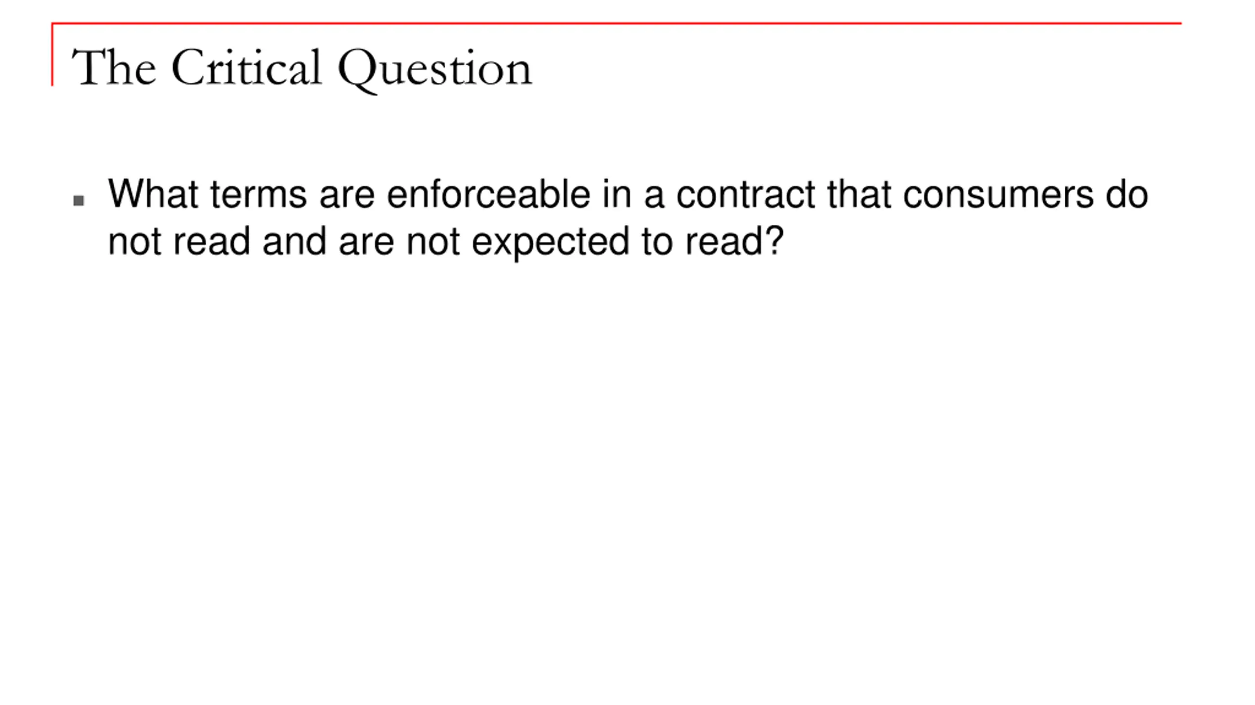 The Critical Question What terms are enforceable in a contract that consumers do not read and are not expected to read?