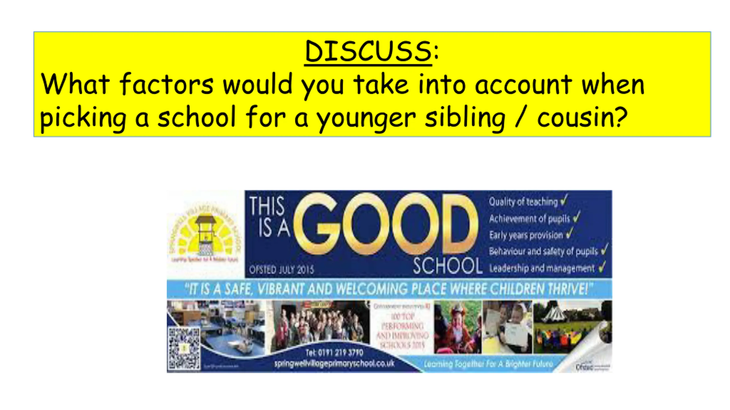 DISCUSS: What factors would you take into account when picking a school for a younger sibling / cousin?
