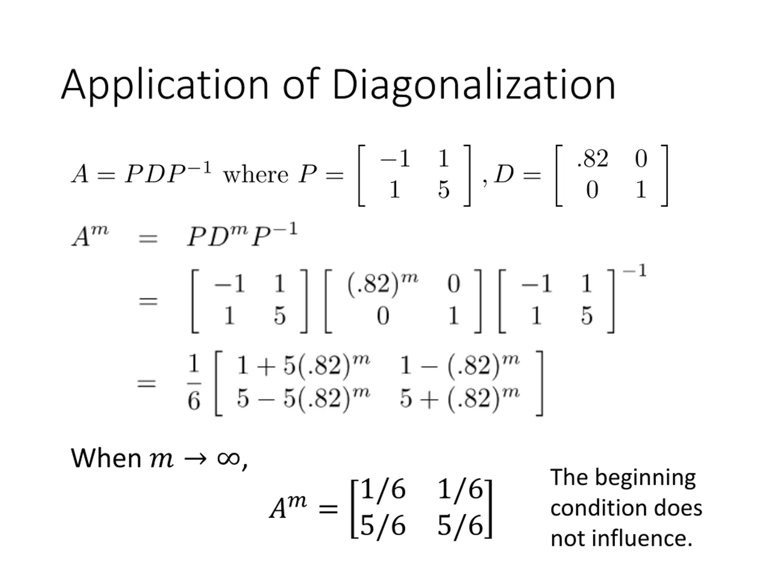 Application of Diagonalization When ? , The beginning condition does not influence. 1/6 5/6 1/6 5/6 ??=