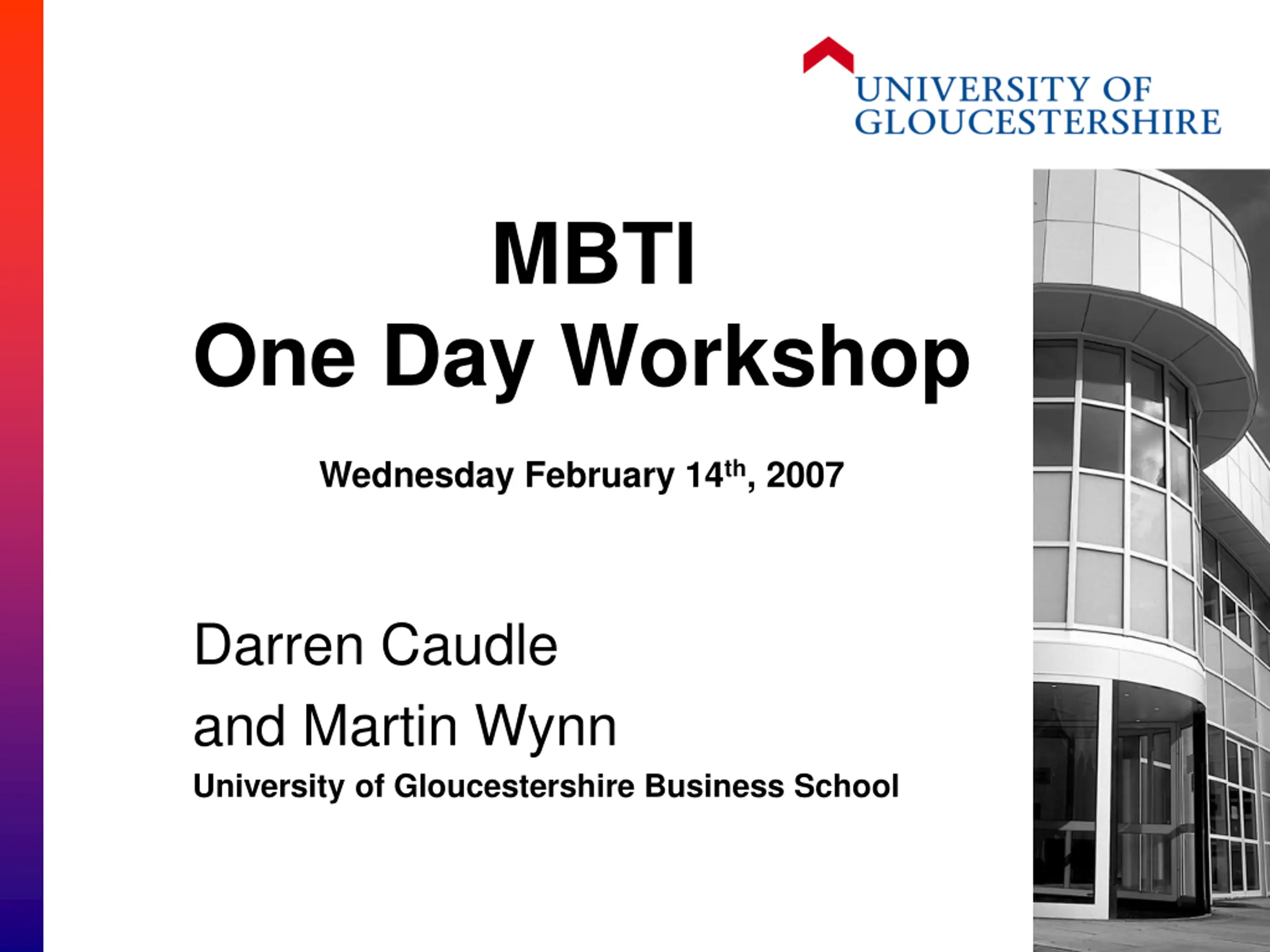 MBTI One Day Workshop Wednesday February 14th, 2007 Darren Caudle and Martin Wynn University of Gloucestershire Business School