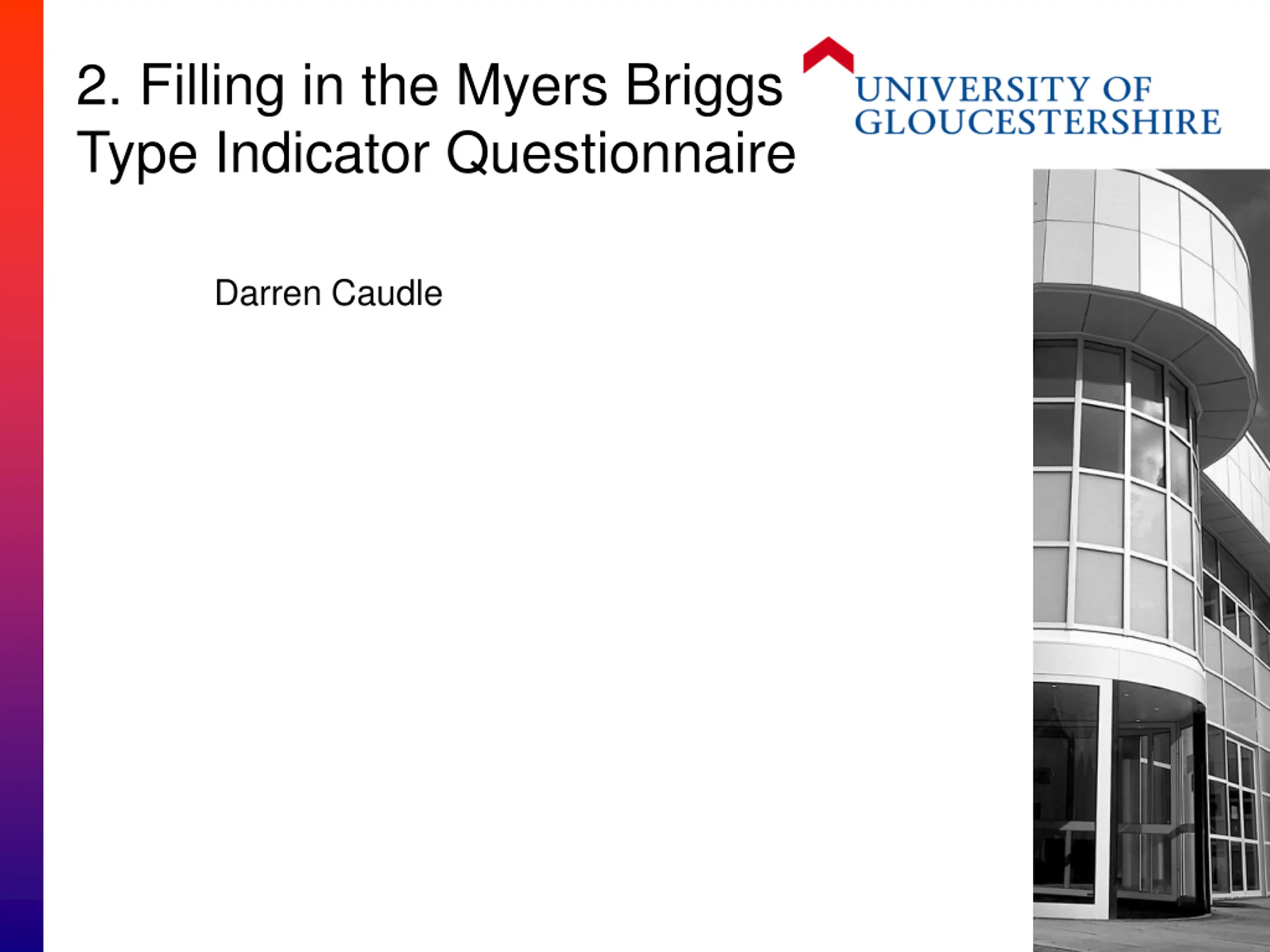 2. Filling in the Myers Briggs Type Indicator Questionnaire Darren Caudle