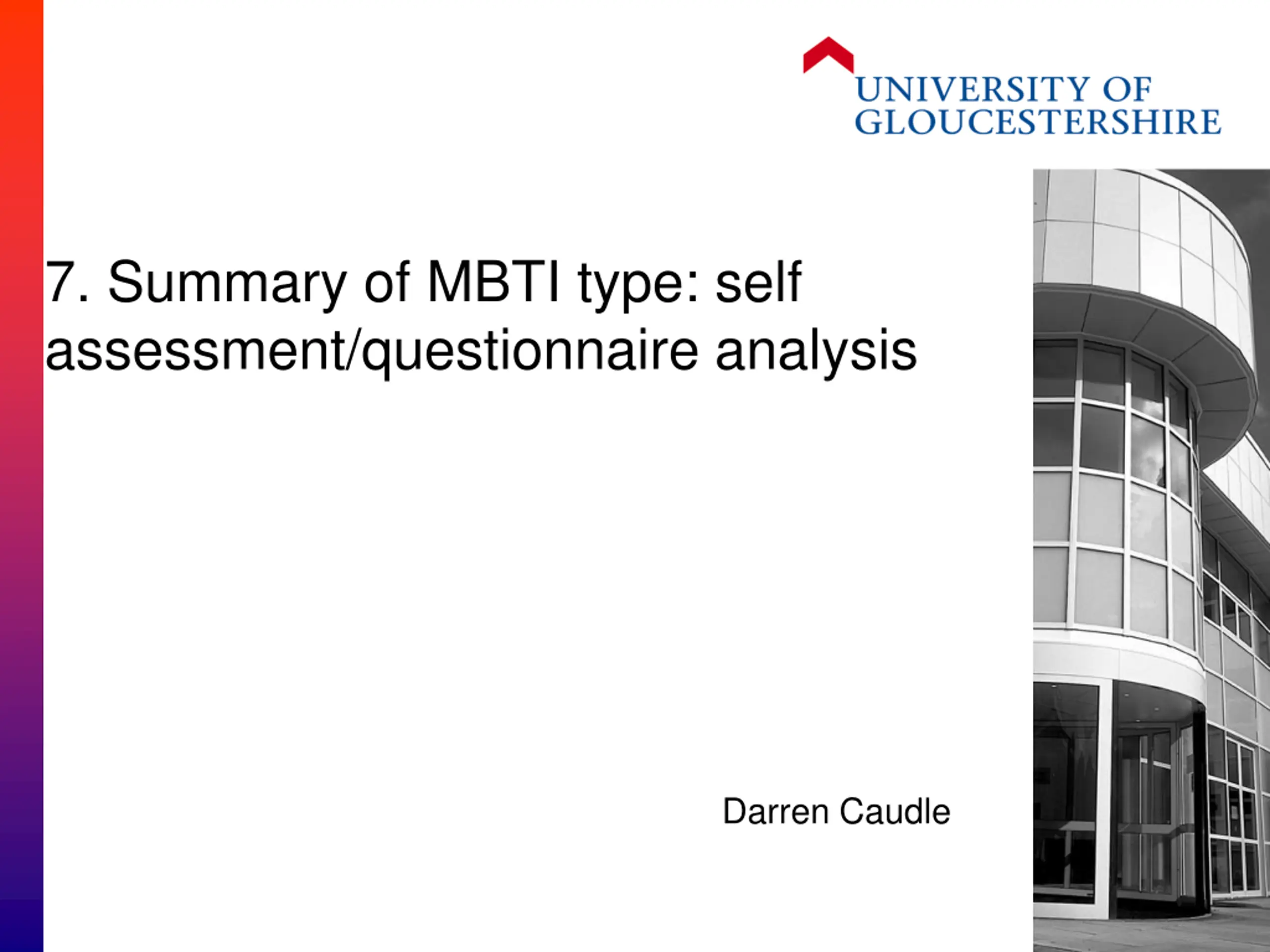 7. Summary of MBTI type: self assessment/questionnaire analysis Darren Caudle
