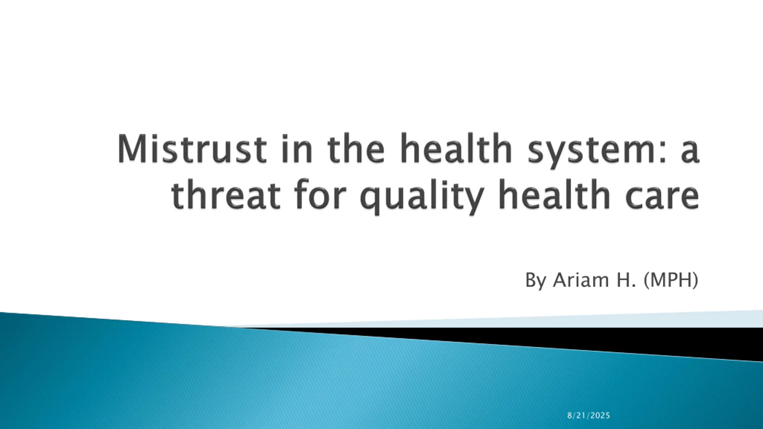 Medical Mistrust in the health system can be defined as a lack of confidence or trust in the healthcare institution, systems, policies, and caregivers . Shall I trust you? Trust me! I am a doctor 8/21/2025