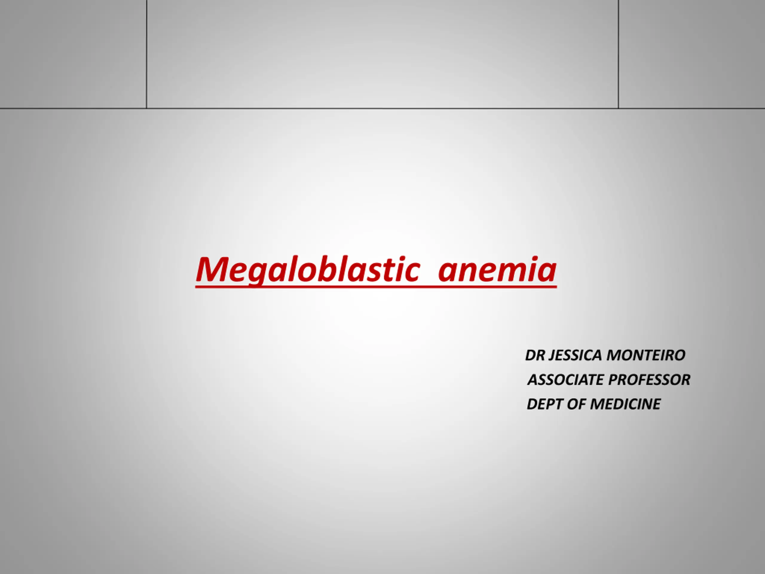 Megaloblastic anemia DR JESSICA MONTEIRO ASSOCIATE PROFESSOR DEPT OF MEDICINE