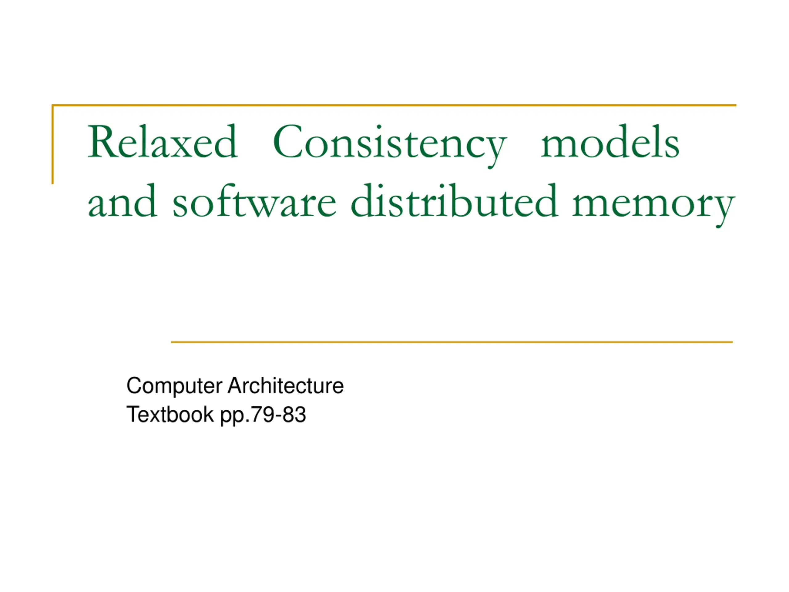 Relaxed Consistency models and software distributed memory Computer Architecture Textbook pp.79-83